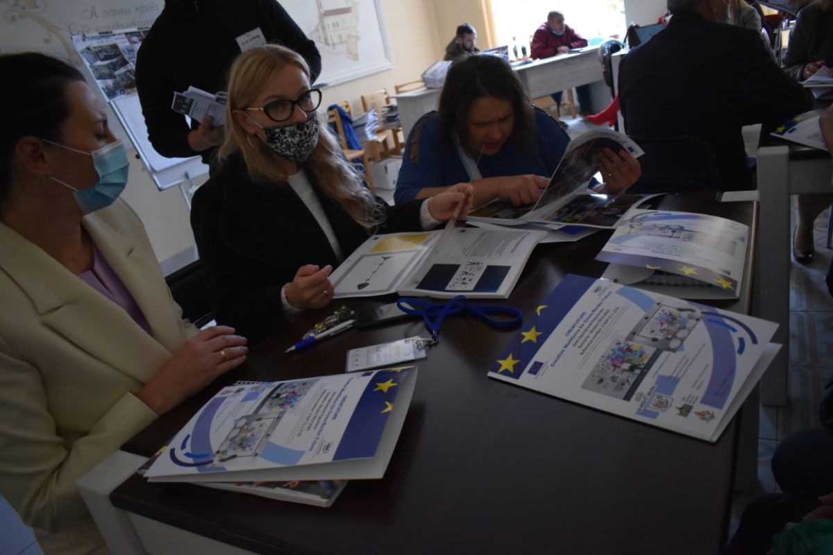 „Am avut 42 de cursanți aici care au finalizat cursurile. Cursurile au fost atât pe dezvoltarea creativității, cât și pe dezvoltarea personală a fiecăruia dintre noi și pentru că principalul om din centrul cursurilor noastre a fost formatorul nostru Adriana Cojocariu, la ceasul bilanțul o invit în față să tragem concluziile eforturilor noastre. Și o să vă prezentăm două mari rezultate ale noastre, pe care le putem arăta în acest moment, broșura de bune practici pe care o aveți deja pe mese și filmul proiectului”,