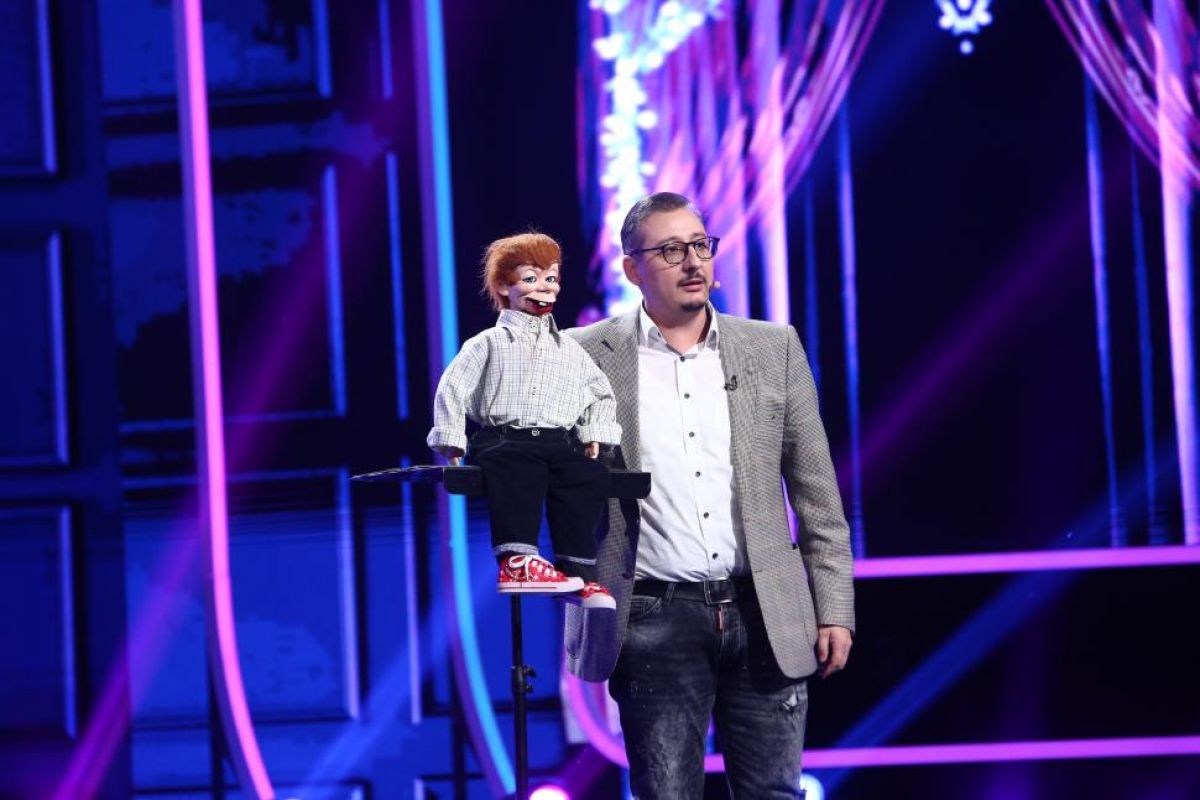 După ce a scos „accesoriul” cu o înfățișare comică, concurentul i-a luat la „roast” pe jurați prin intermediul păpușii: „Și ăla cine e? Ventrilocul lui Cortea?!”, a spus concurentul, ironizându-l pe Cătălin Bordea.