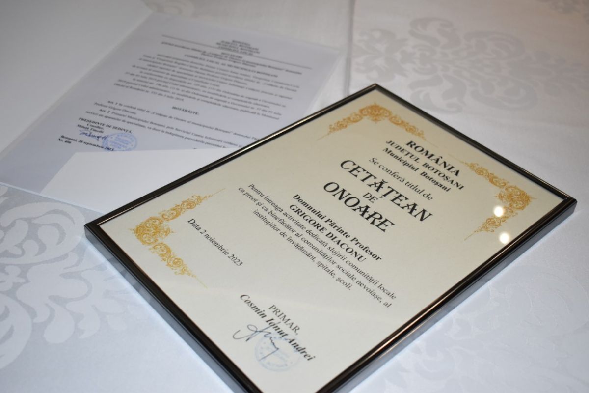 Evenimentul a fost creat în jurul părintelui Grigore Diaconu care a devenit cetățean de onoare al municipiului Botoșani, la propunerea viceprimarului Liviu Toma.