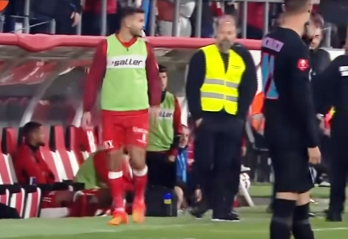 În minutul 88, arbitrul Adrian Cojocaru s-a îndreptat spre banca celor de la UTA Arad, unde se protesta intens.
