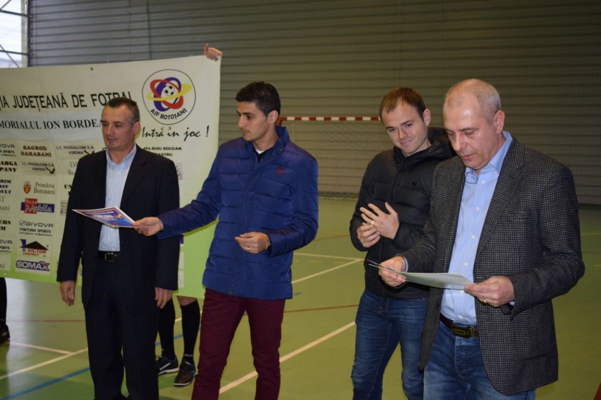 ”Cred că a fost o competiție reușită, poate mai bună decât anul trecut, se vede că am progresat în timp și altfel am început să ne descurcăm la fotbal în sală. În primul rând nu aș vrea să uităm pentru ce am venit aici. Această competiție o ținem în cinstea unui fost mare jucător, un fost mare portar al CS Botoșani, actuala FC Botoșani și aș vrea să începem festivitatea de premiere prin a ține un moment de reculegere, poate pentru dv. cei mici nu erați pe vremea aceea, părinții dv. l-au prins pe dl Ion Bordeanu și s-au bucurat de evoluțiile lui”,