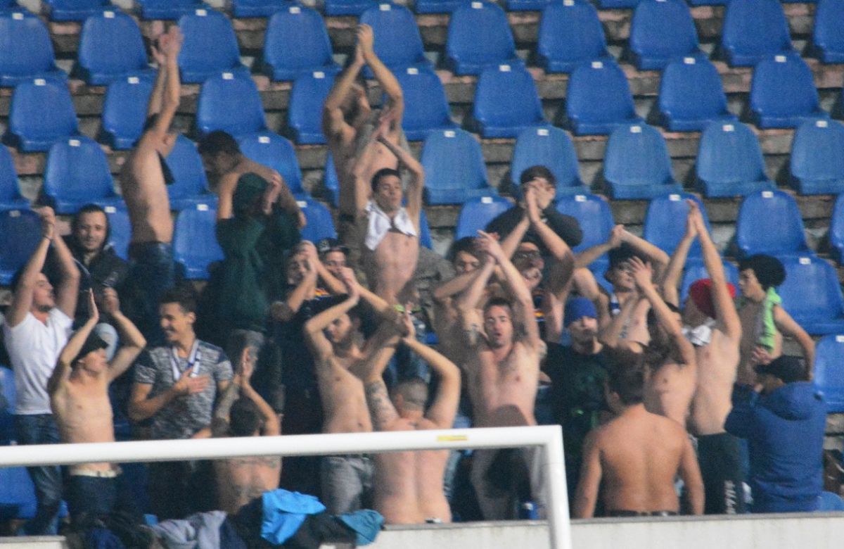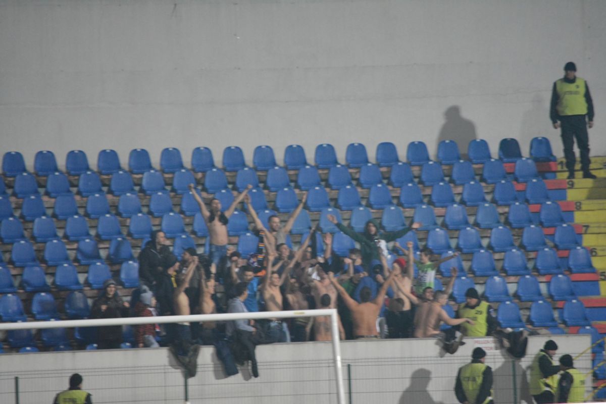Premieră pe Stadionul Municipal! Pentru prima dată de la scindarea Dark Hooligans grupul suporterilor care au părăsit peluza Ion Bordeanu şi au ales să îşi încurajeze echipa din partea opusă a arenei a fost mai mare.