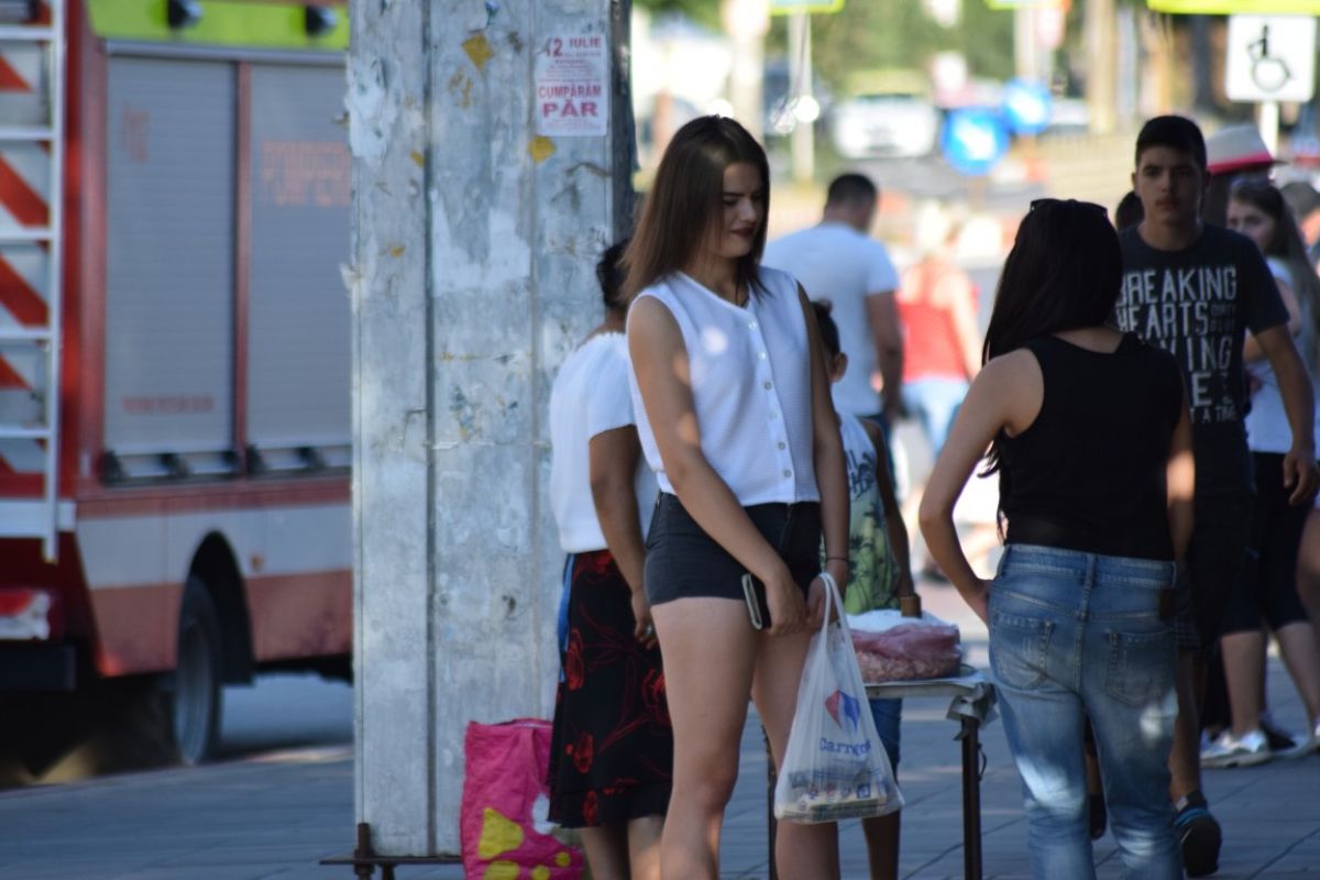 Unii, la pielea goală. Fetele mai ales cu pantaloni scurți și rochițe, bărbații cu bermude. Majoritatea cu șepci pe capete și ochelari de soare pentru a se feri de razele de soare. (G.E.)