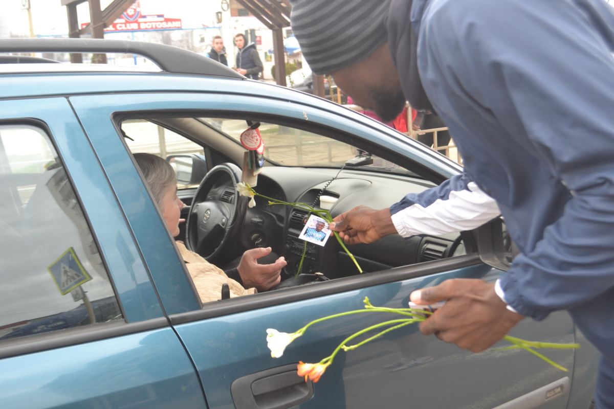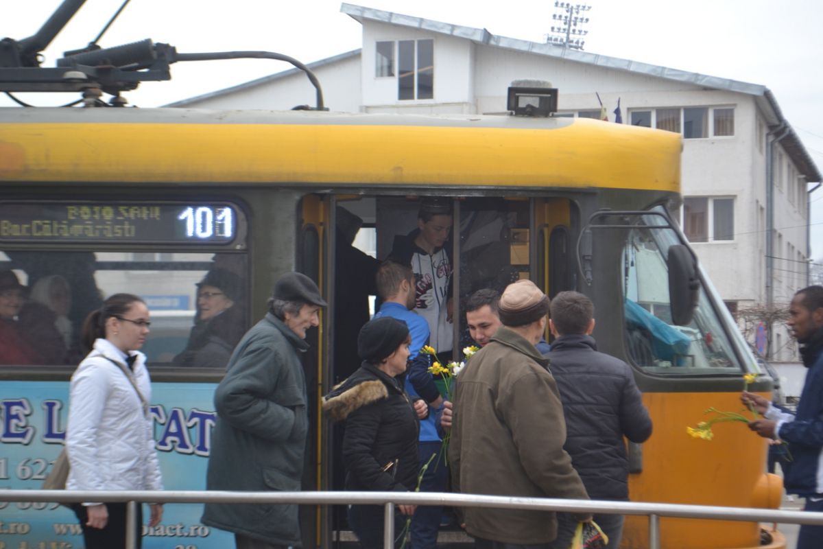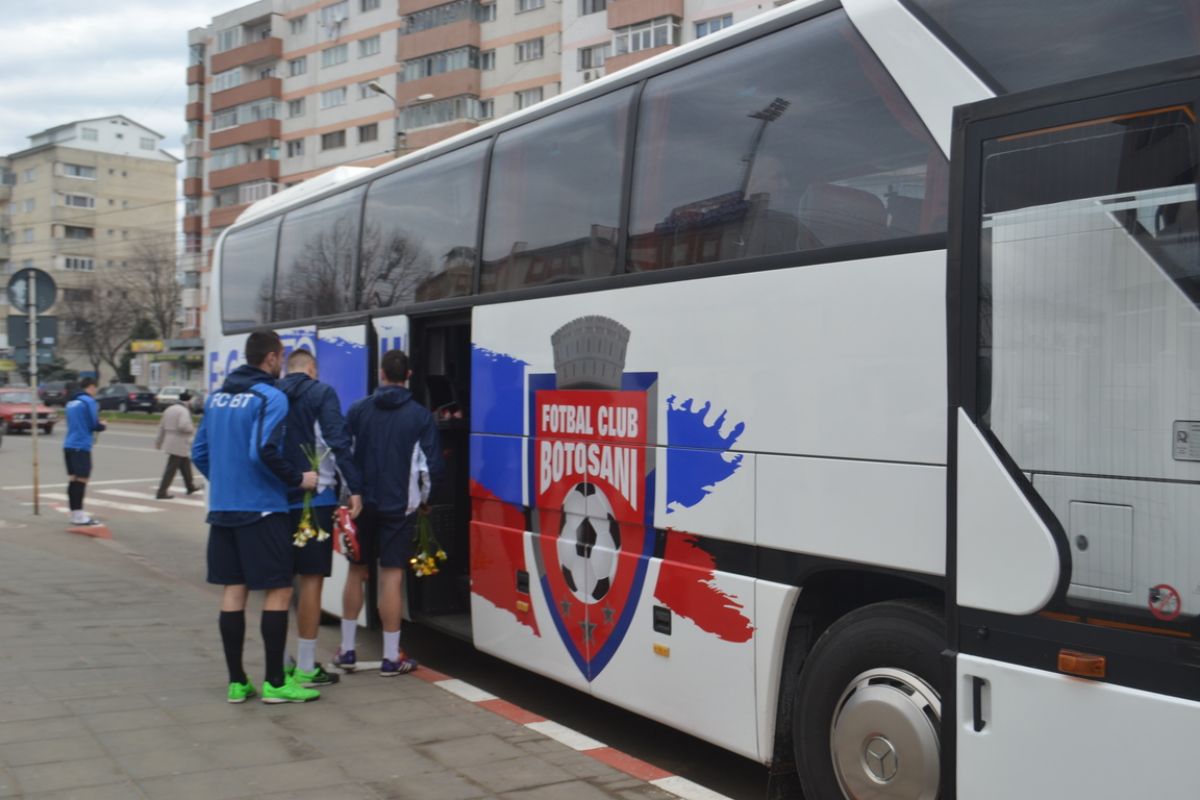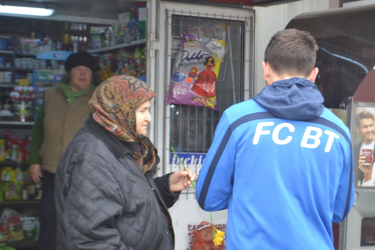 În jurul orei 11:00, mai mulți fotbaliști de la FC Botoșani au ieșit de la club cu o mulțime de flori și de abțibilduri promoționale pentru a le împărți tuturor femeilor din zona stadionului.