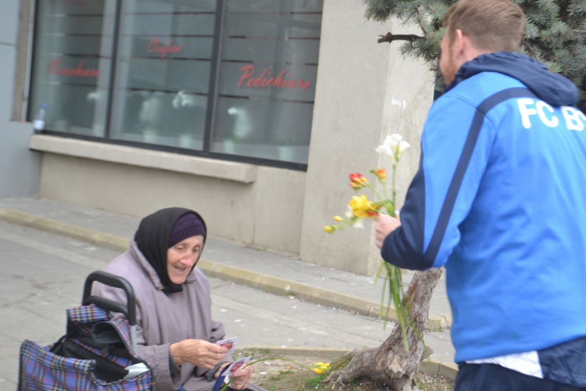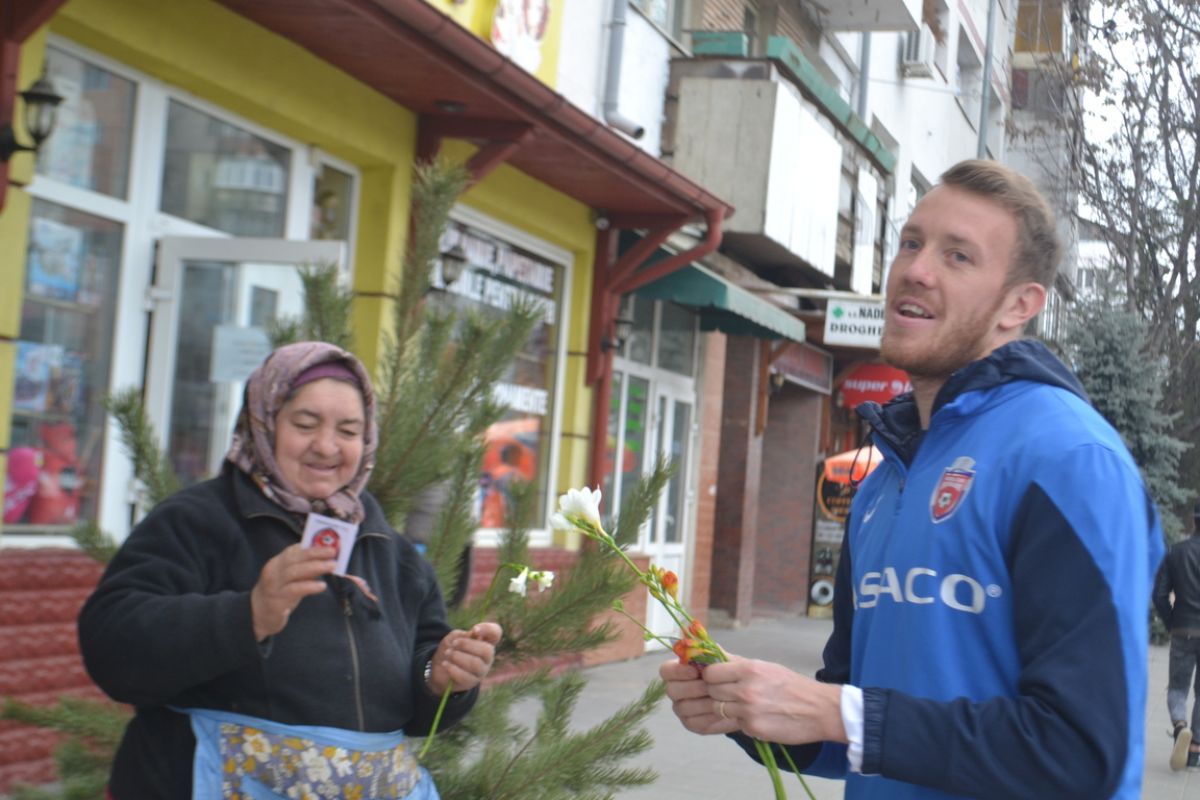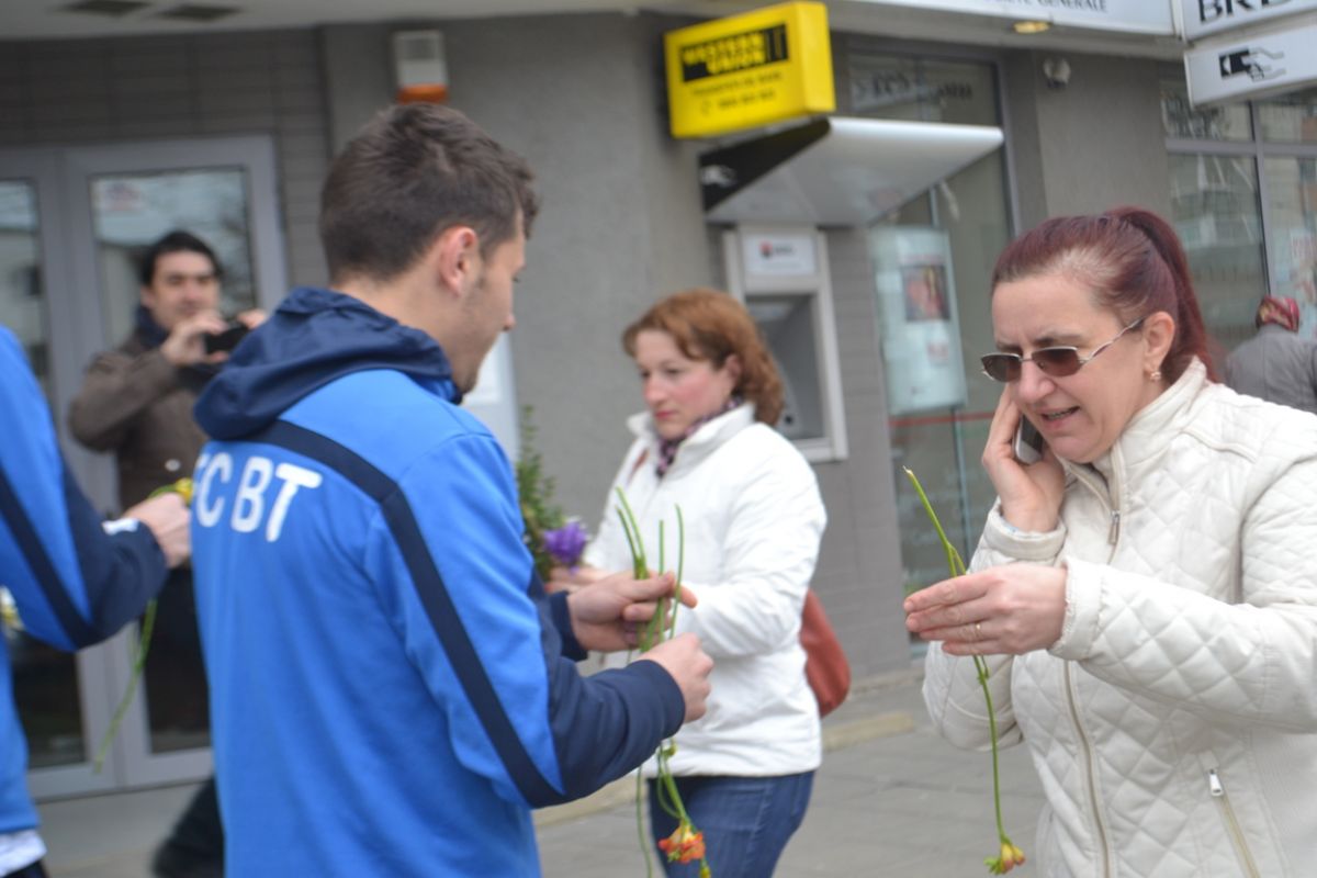 Astăzi, 8 martie, de ziua internațională a femeii, jucătorii de la echipa fanion a județului au împărțit flori și materiale promoționale pentru toate doamnele și doamnișoarele care le-au sărit în cale sau se aflau în zonă.