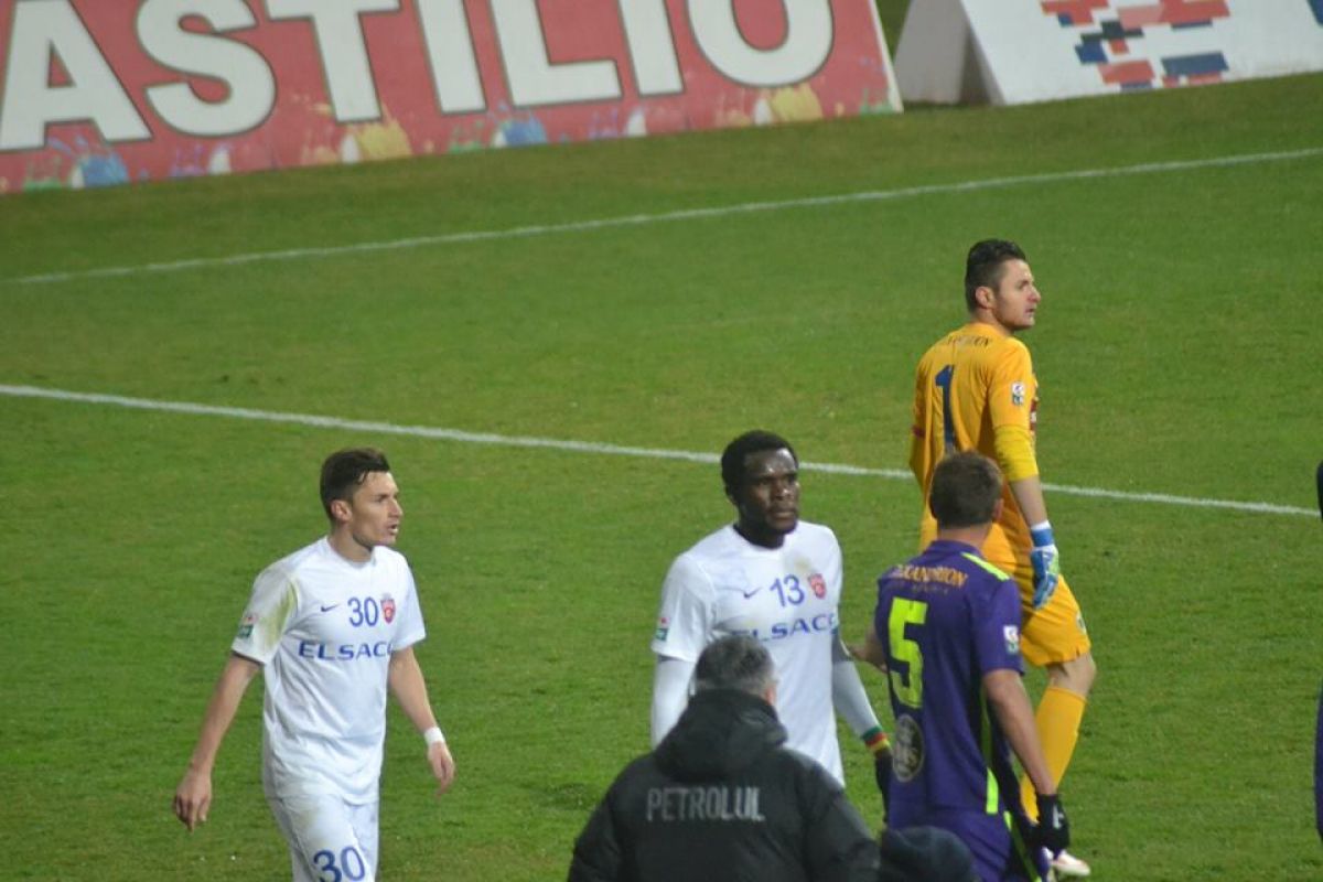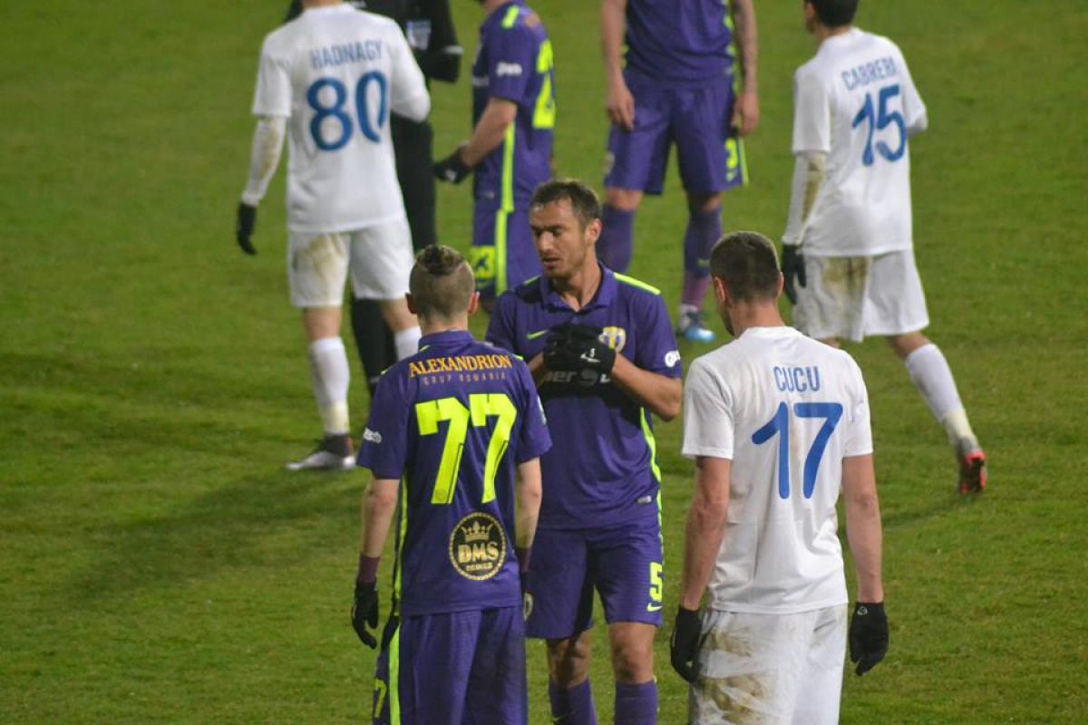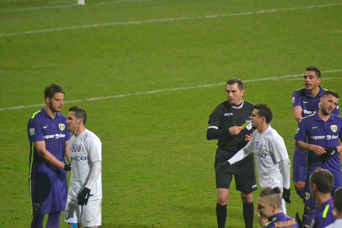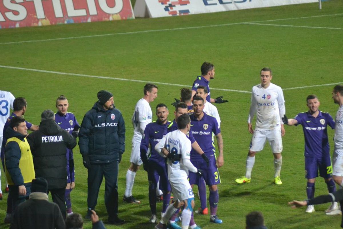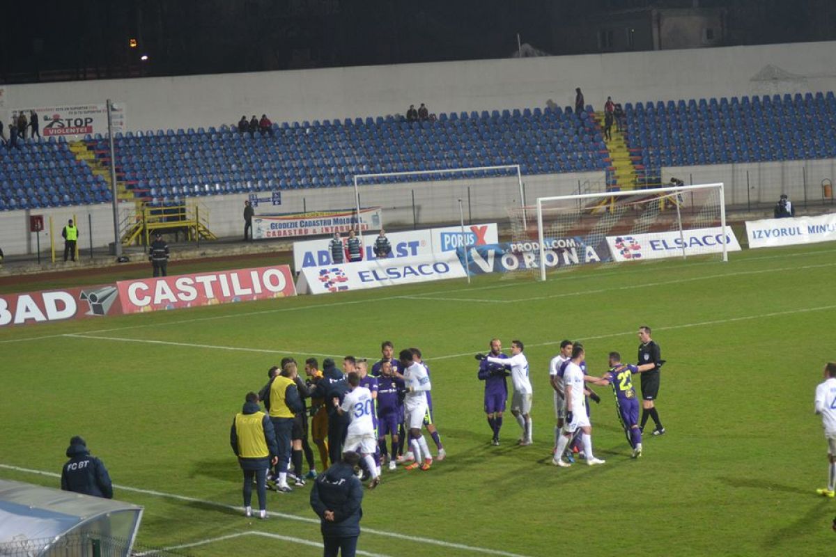 Veteranul Attila Hadnagy a avut câteva reproșuri să-i adreseze lui Daniel Stana și de acolo s-a ajuns la o îmbulzeală generală între cele două echipe.Totul s-a petrecut în fața băncii tehnice a echipei gazdă. Jucătorii au început să se împingă și să-și strige tot felul de cuvinte. Arbitrul central și tușierul au intervenit pentru liniștirea spiritelor. Au sărit de pe bancă și cei aflați în staff-ul tehnic al lui Cristi Pustai. Partida este una încrâncenată, se joacă dur dar fără finalizare iar în primele 45 de minute s-au înregistrat două faze controversate și cartonașe galbene împărțite cu dărnicie. (G.E.)