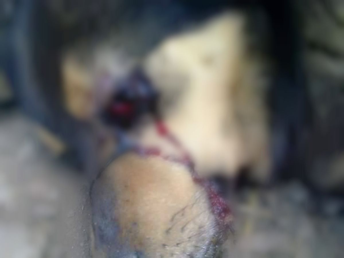 O imagine șocantă circulă pe rețeaua socială Facebook și a stârnit indignare din partea internauților. Din câte se pare, un patruped a fost bătut și tăiat de un bărbat, care ar fi fost deranjat de faptul că animalul i-ar fi trecut pe proprietate.