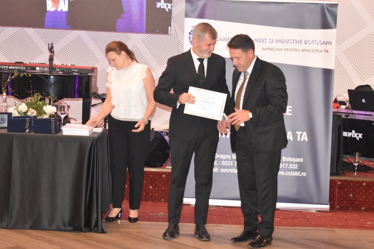 Săptămâna trecută, la lansarea noii ediții a Topului Județean al Firmelor, Doina și Iulian Căzăcuț au participat în premieră la eveniment după înființarea în 2015 a noii firme, fiind premiați de Valeriu Iftime, președintele Camerei de Comerț, Industrie și Agricultură (CCIA) Botoșani.