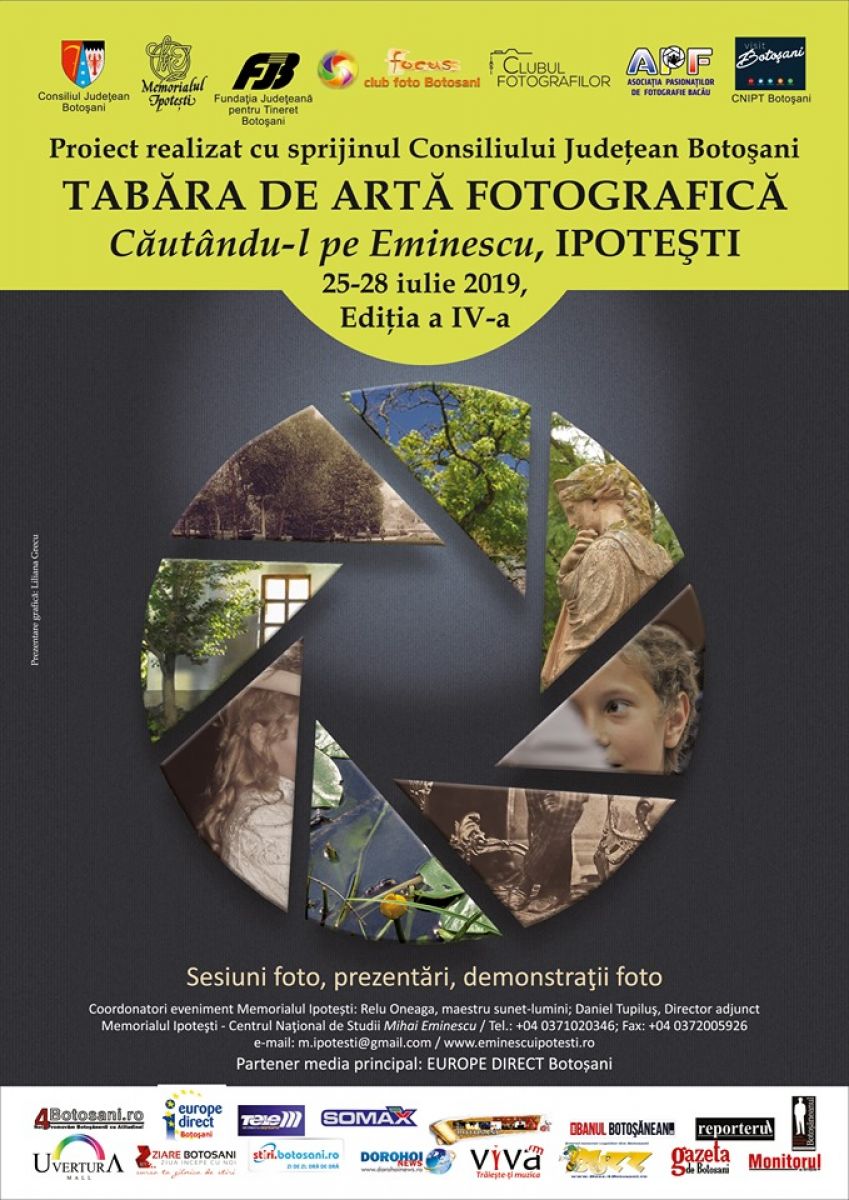 Fotografi din mai multe județe ale țării vor fi prezenți, în perioada 25-28 iulie 2019, la Ipotești pentru a participa la tabăra de artă fotografică, organizată de Memorialul Ipotești – Centrul Național de Studii ”Mihai Eminescu”, în parteneriat cu Fundația Judeteană Pentru Tineret Botoșani.