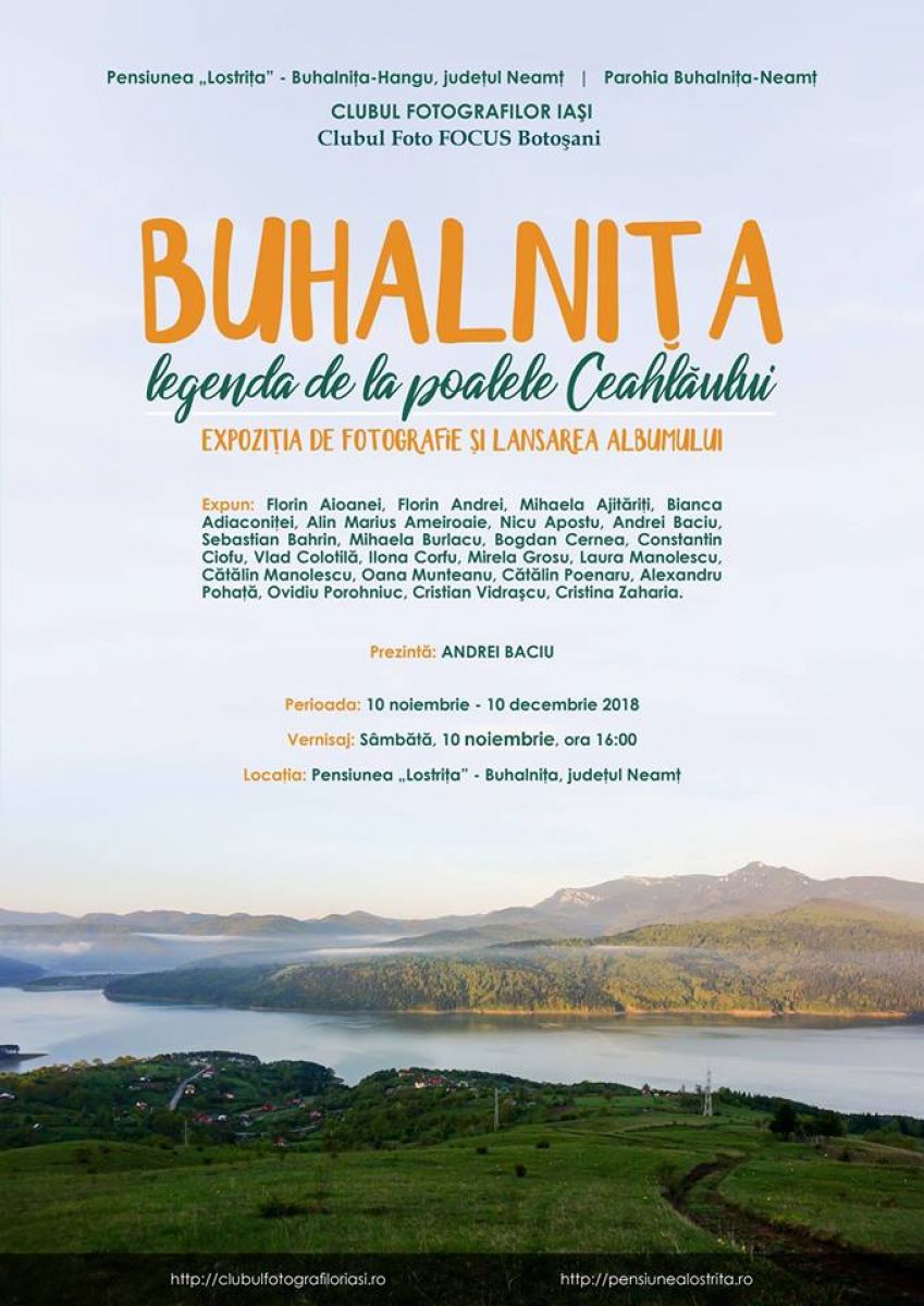 Periplul de un an de zile în satul Buhalniţa-Neamţ al fotografilor din Iaşi, Botoşani şi Ploieşti a fost încununat cu un moment festiv. La Pensiunea Lostriţa aflată în localitatea de la poalele Ceahlăului, a avut loc sâmbătă, 10 noiembrie 2018, închiderea proiectului fotografic „Buhalniţa, legenda de la poalele Ceahlăului” şi expoziţia de fotografie cu acelaşi nume. Mai întâi, participanţii, membri ai Clubului Fotografilor Iaşi, ai Clubului Foto FOCUS Botoşani şi artistul fotograf Andrei Baciu, invitatul special din Ploieşti, au asistat la Sfânta Liturghie în biserica Parohiei Buhalniţa. Programul a continuat cu o tură foto, iar la orele amiezii a avut loc închiderea proiectului, în prezenţa fotografilor şi a numeroşi invitaţi.