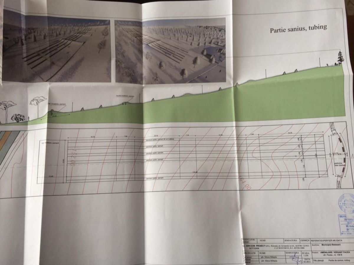 ”Dupa 2 ani de studii geotehnice, topografice, proiecte tehnice, planse si masuratori, discutii si analize va pot prezenta astazi cateva imagini din proiectul ce asteapta sa fie transpus in realitate in curand! Prin realizarea acestui proiect care va oferi servicii complementare celor de la Cornisa, Botosaniul va avea cea mai bogata oferta pentru turismul de agrement din Moldova!”