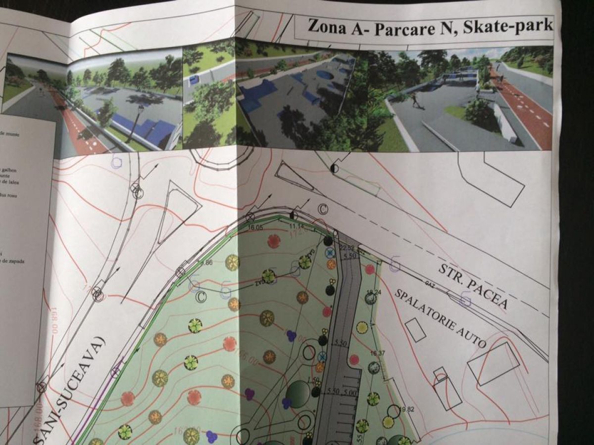 Ideea a tot fost repetată verbal de șefii Primăriei de aproximativ doi ani de zile încoace. Cu puțin înainte de campania electorală au apărut și primele schițe despre cum ar urma să arate parcul. Fotografiile au fost postate de Ovidiu Portariuc, pe pagina sa de Facebook.