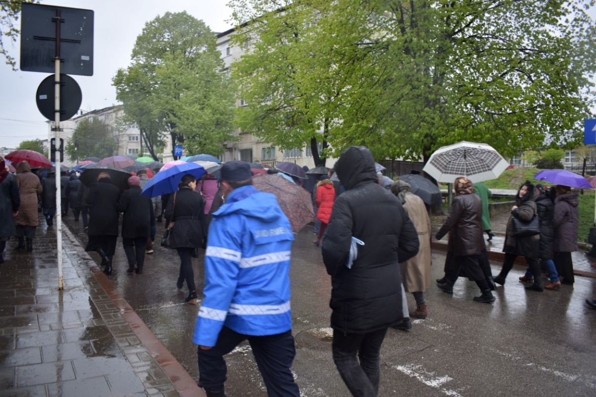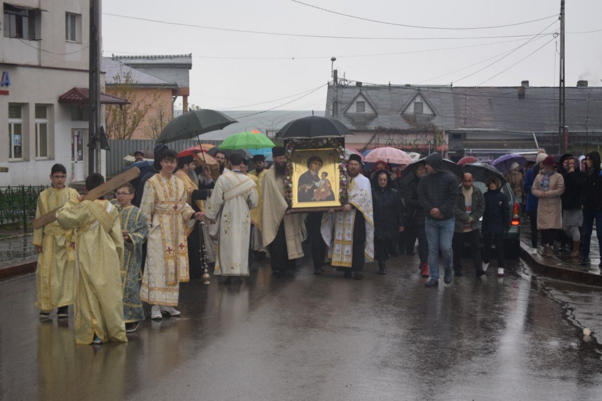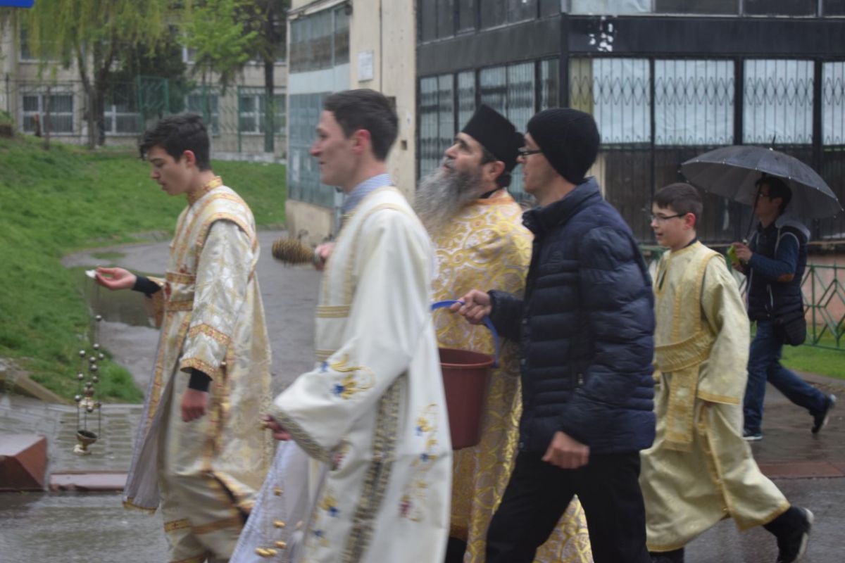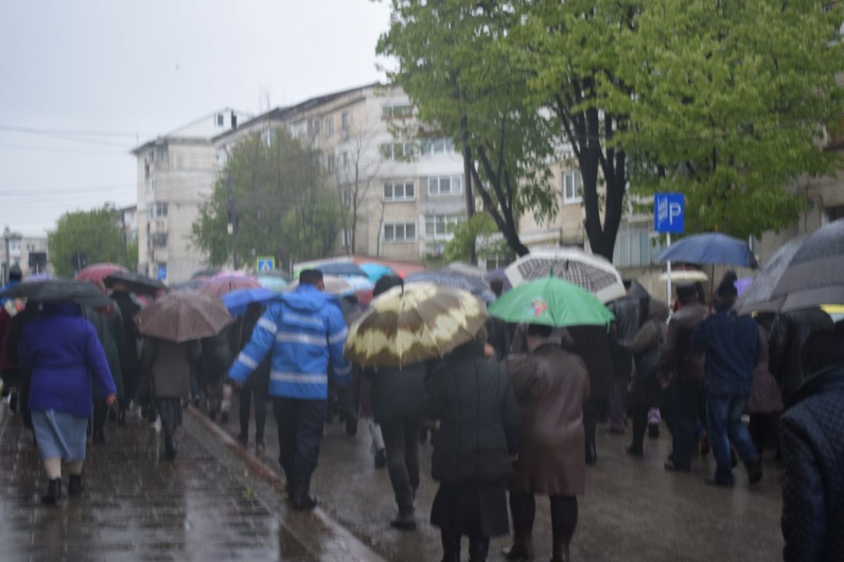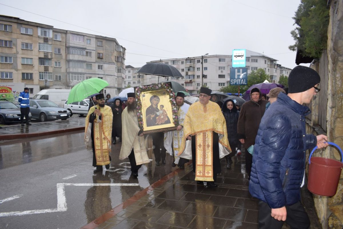 Cu pas grăbit și ascunși sub umbrele și glugi, credincioșii au parcurs în mai puțin de o oră traseul Parcul Tineretului, Strada Săvenilor, Aleea Parcul Tineretului, Strada Parcul Tineretului şi Biserică.