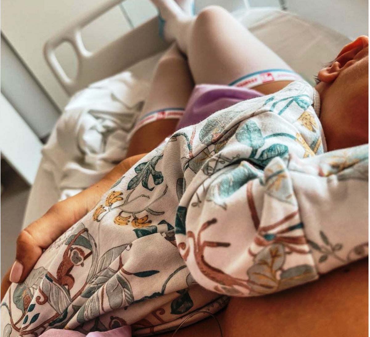Pozele postate de vedetă îl arată pe micuț pe pieptul mamei sale, care este topită după pruncul său. ”M-am topit”, a scris ea la descrierea fotografiei cu bebelușul.