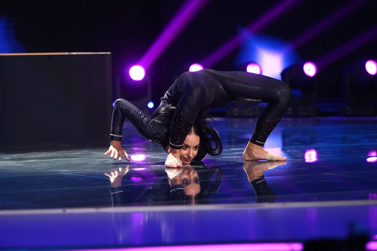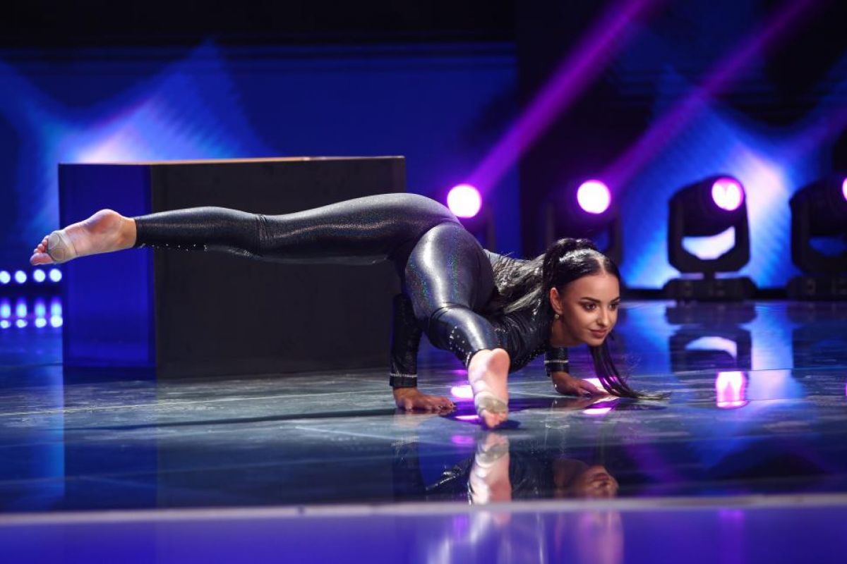 Frumoasa botoşăneancă le-a arătat juraților un număr de echilibristică și gimnastică. Concurenta se mișca în așa fel încât părea că nu are oase în corp, dând dovadă de elasticitate a corpului.