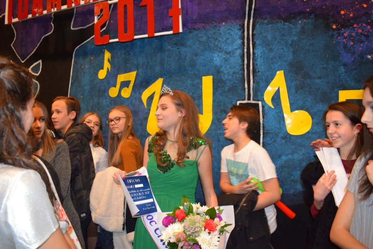 În momentul în care prezentatorii au anunțat câștigătorii, scena s-a umplut de zeci de elevi care au venit să-și felicite favoriții.