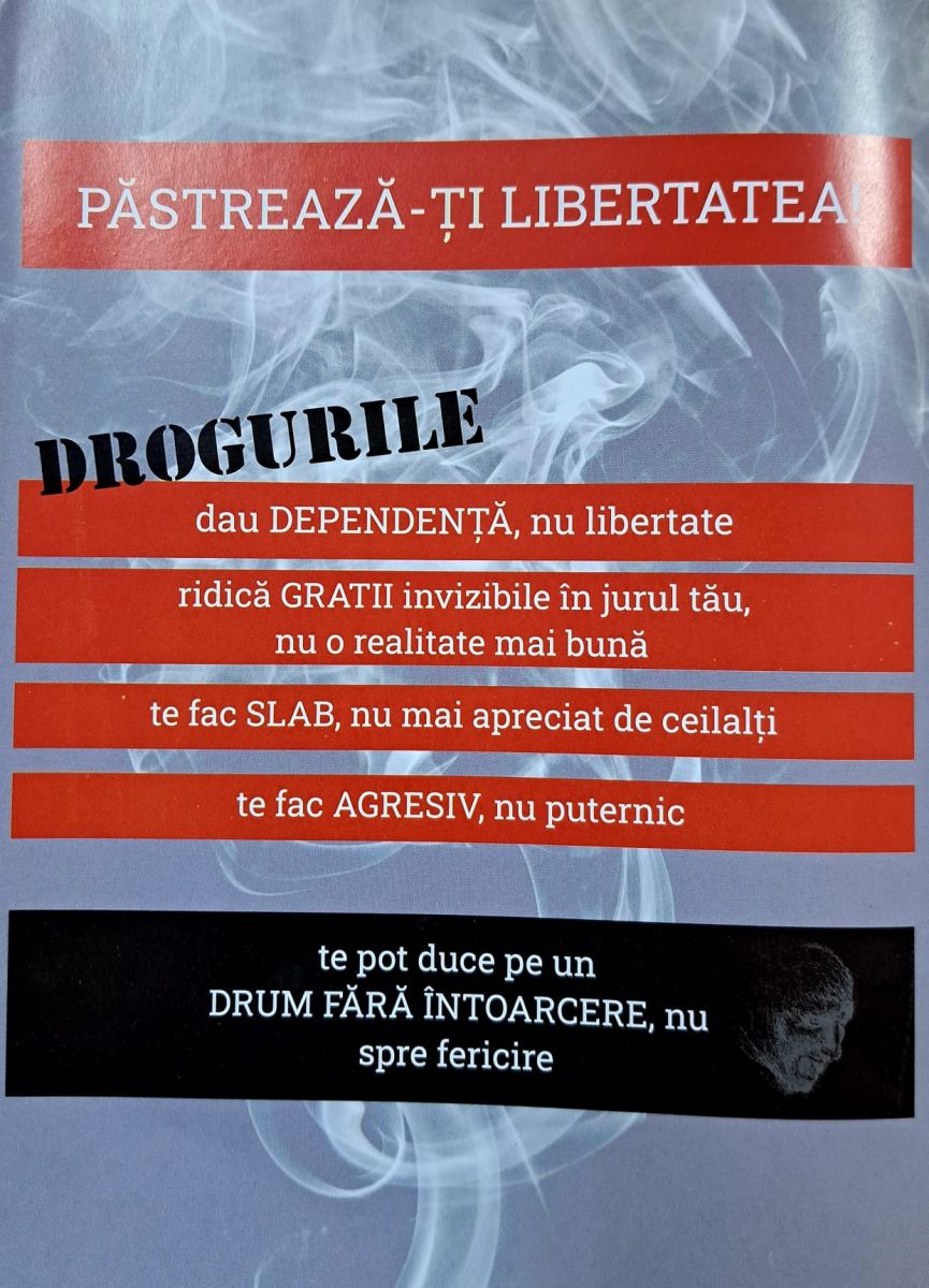 Activitatea s-a desfășurat în cadrul campaniei locale de prevenire și combatere a consumului de substanțe interzise în rândul populației de vârstă școlară intitulată ”Fumurile nu-ți dau valoare!”