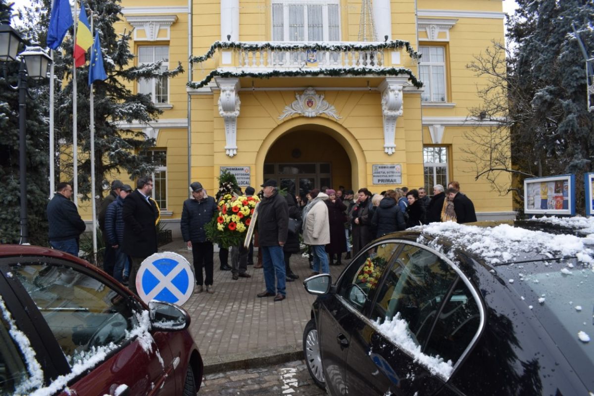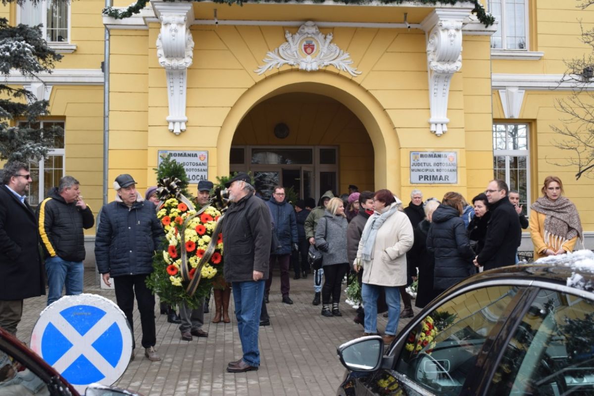 Colegii săi din Primărie au dus mai multe coroane la Biserică și, multe dintre doamne aveau buchete de flori albe.