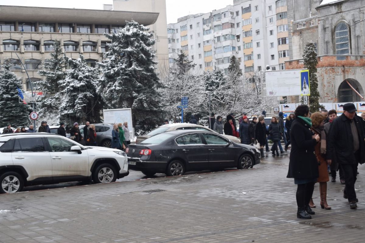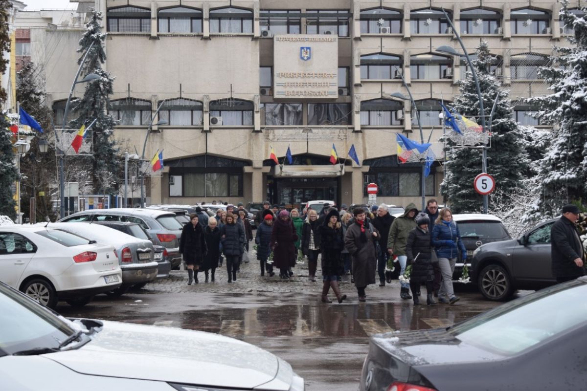 Șefi și funcționari din Primăria municipiului reședință de județ s-au adunat luni, 6 ianuarie 2020 de la ora 10:30 pentru a merge la Biserica Sfânta Parascheva de pe Pietonalul Unirii unde a fost depus medicul Marius Zăiceanu.