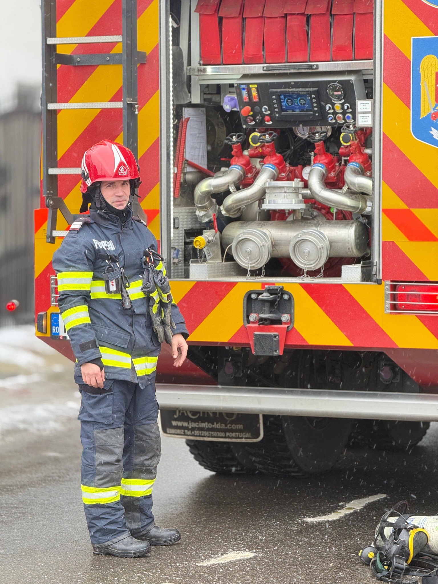 ”Sunt colegii noștri, surprinși după stingerea incendiului de pe strada Ion Creangă, din municipiul Botoșani. Rămân de veghe până mâine, pregătiți să intervină din nou, pentru că fiecare secundă contează. Respect pentru oamenii care aleg, zi de zi, să fie acolo unde este cel mai greu.”