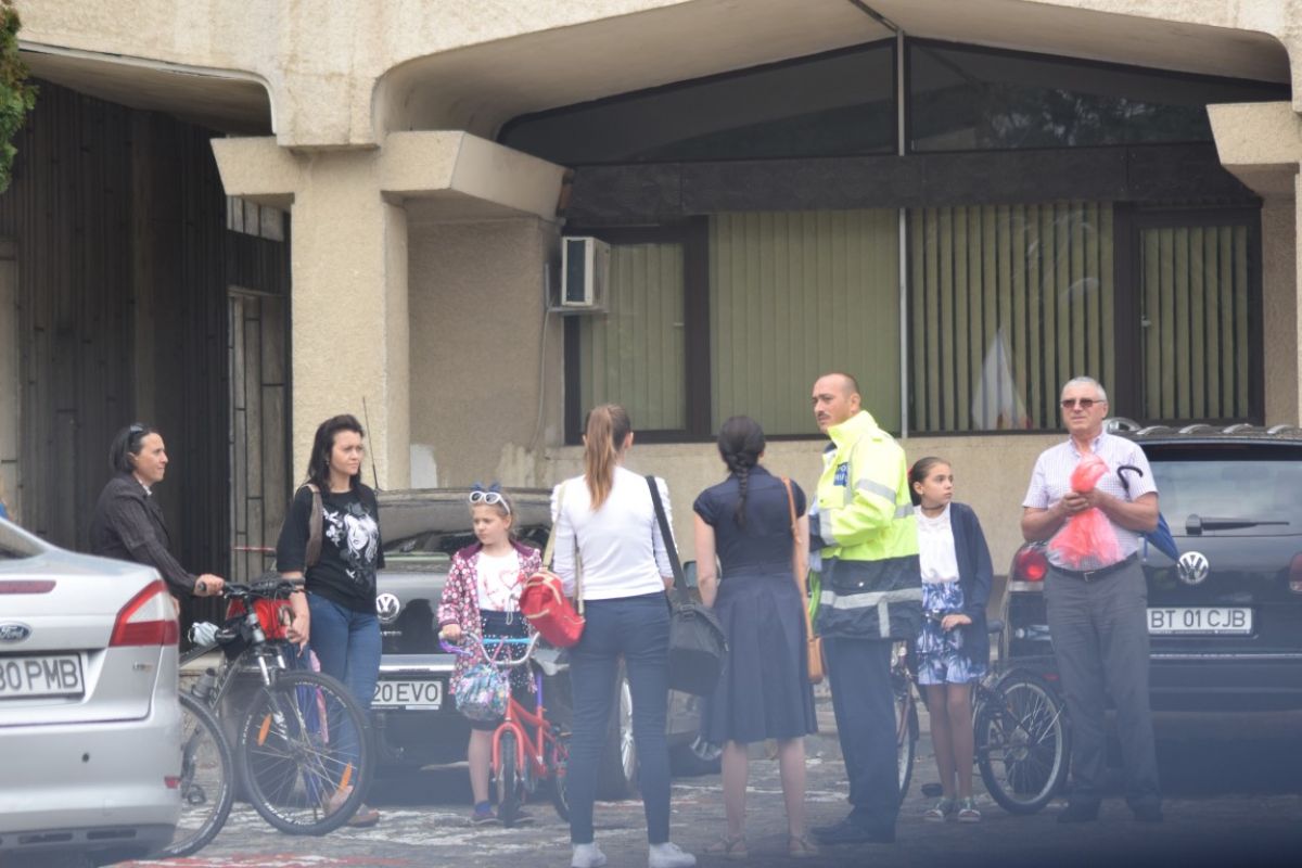 Au fost supravegheați de Poliție și Jandarmerie până la pornirea pe traseul din oraș. Înainte de asta au strigat în fața Primăriei : ”Skiiirt Biiiiiike”.