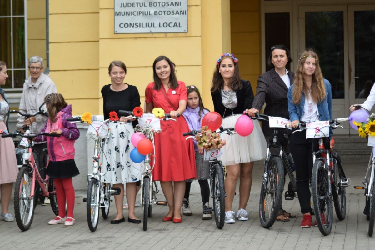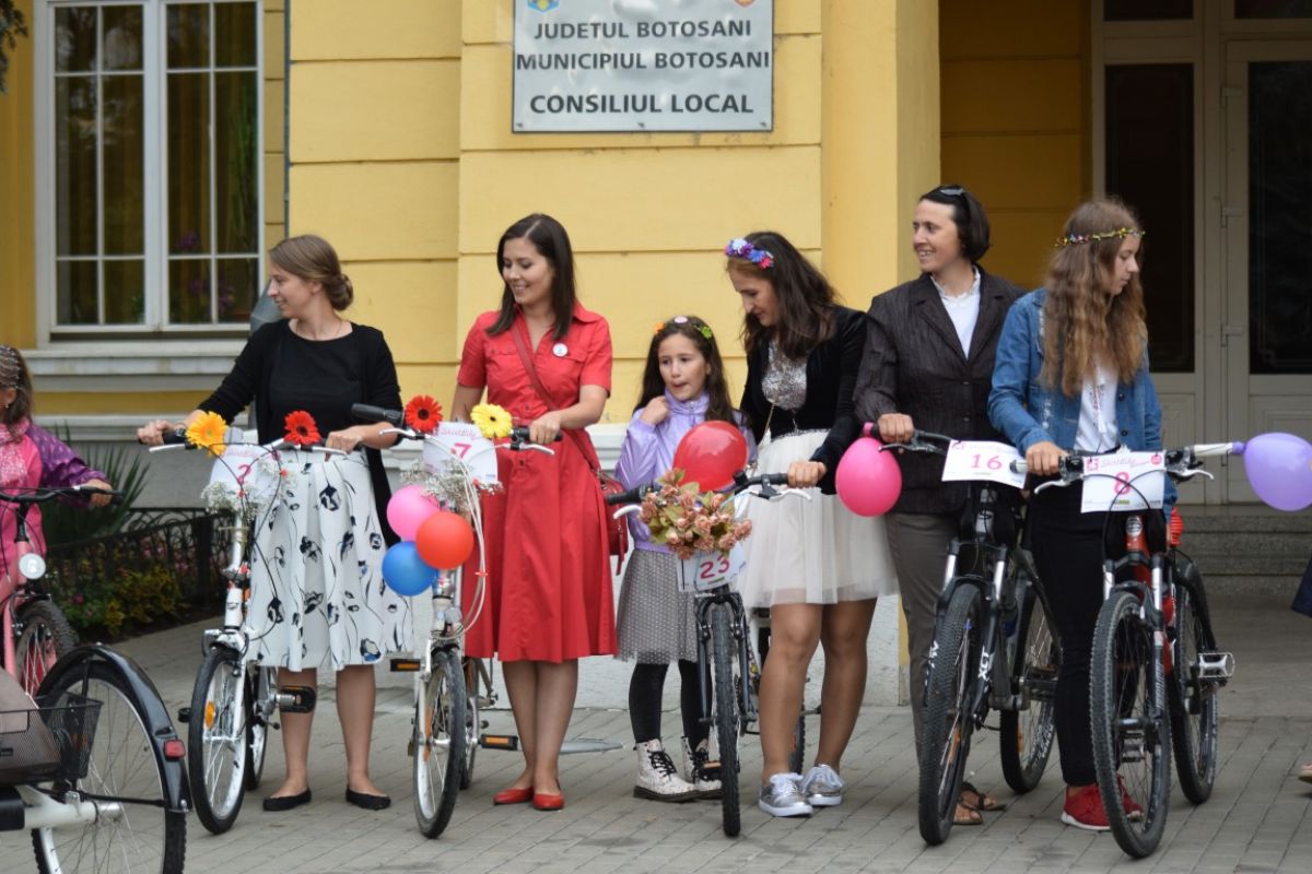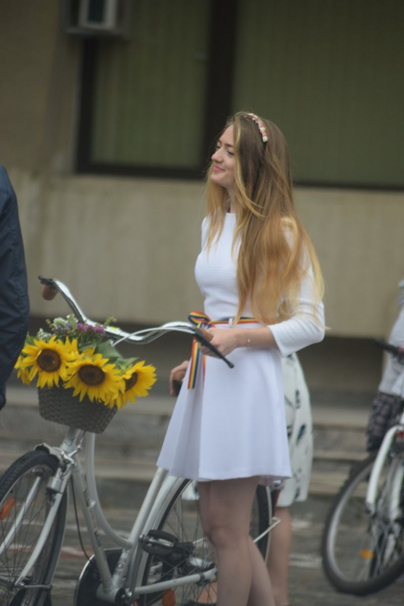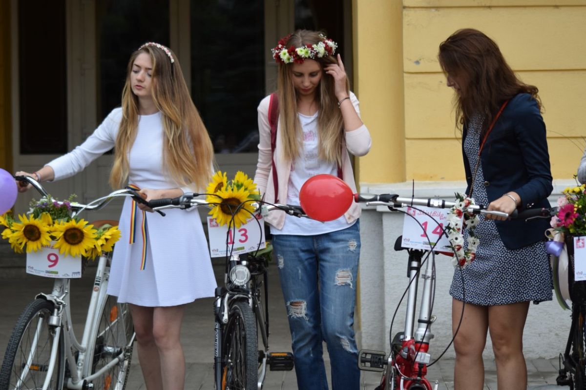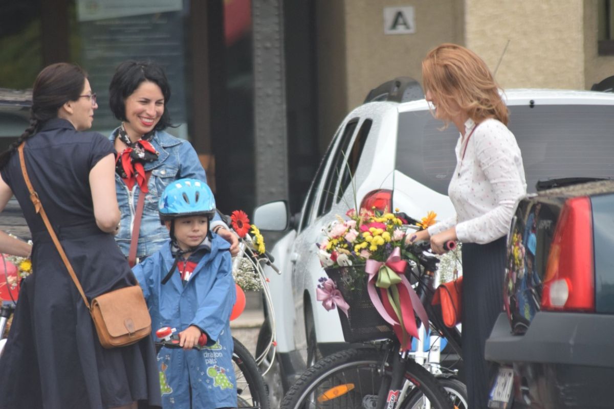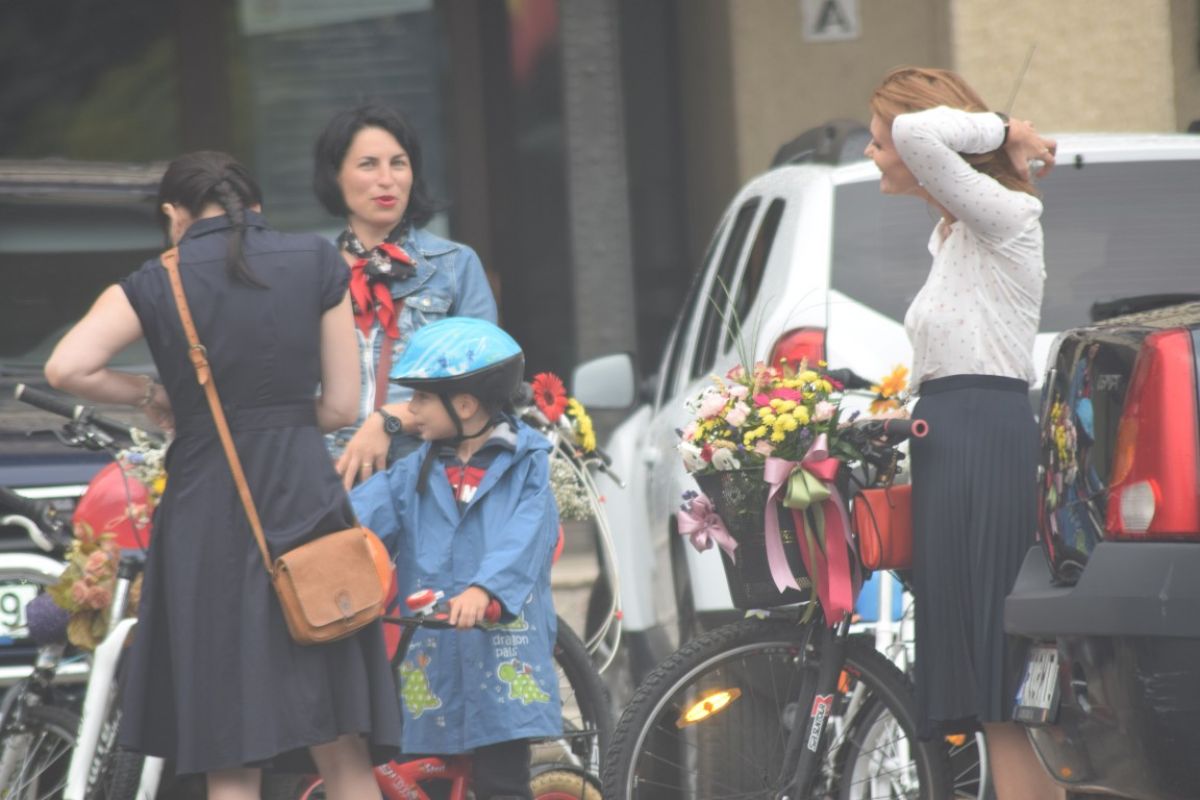 Întâi au venit trei fetițe. Apoi o mamă cu fiica ei. Apoi alte și alte persoane, fete în general, în fustițe și rochițe, cu flori în păr și pe ghidoanele sau roțile bicicletelor. Și ceva băieți, care probabil au auzit de acțiune și au vrut să le încurajeze pe reprezentantele sexului frumos.