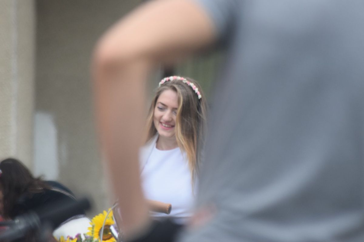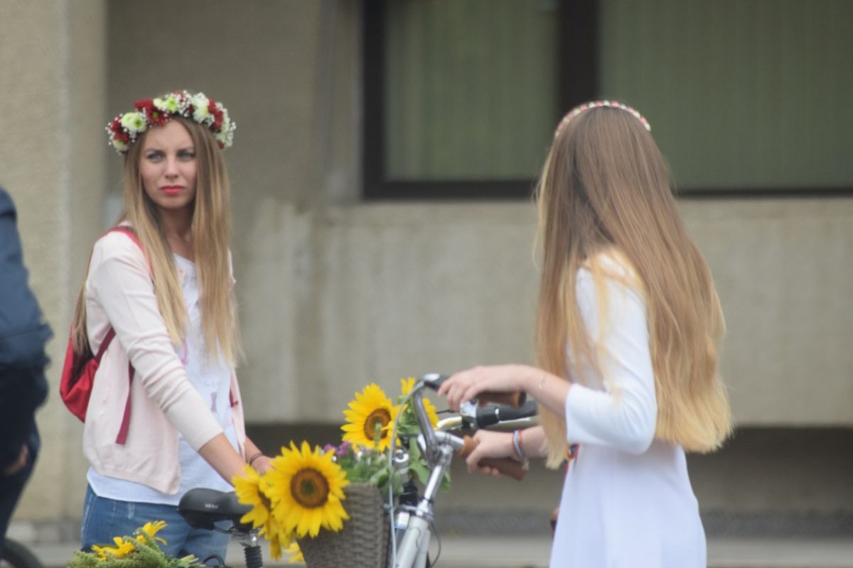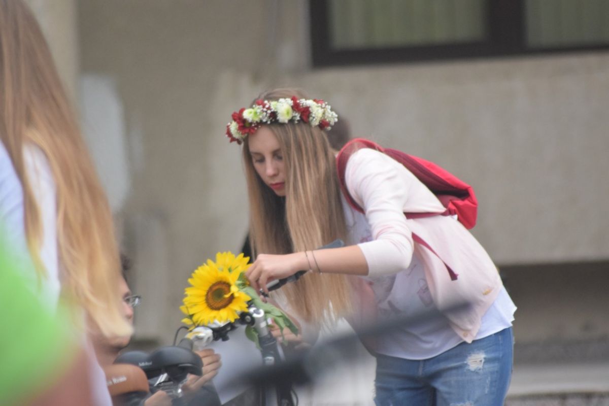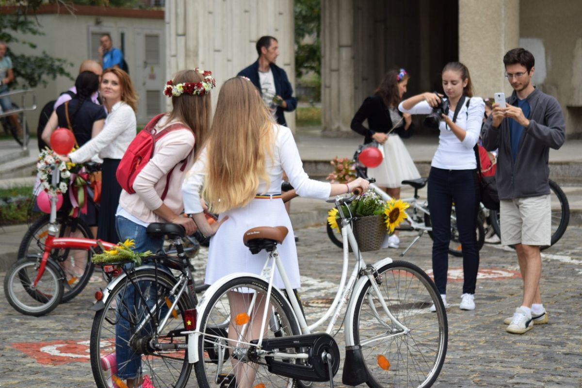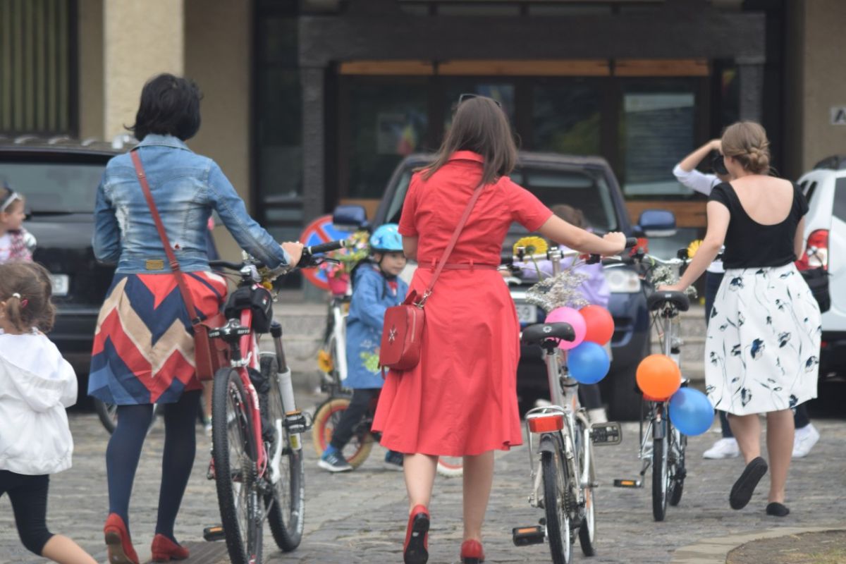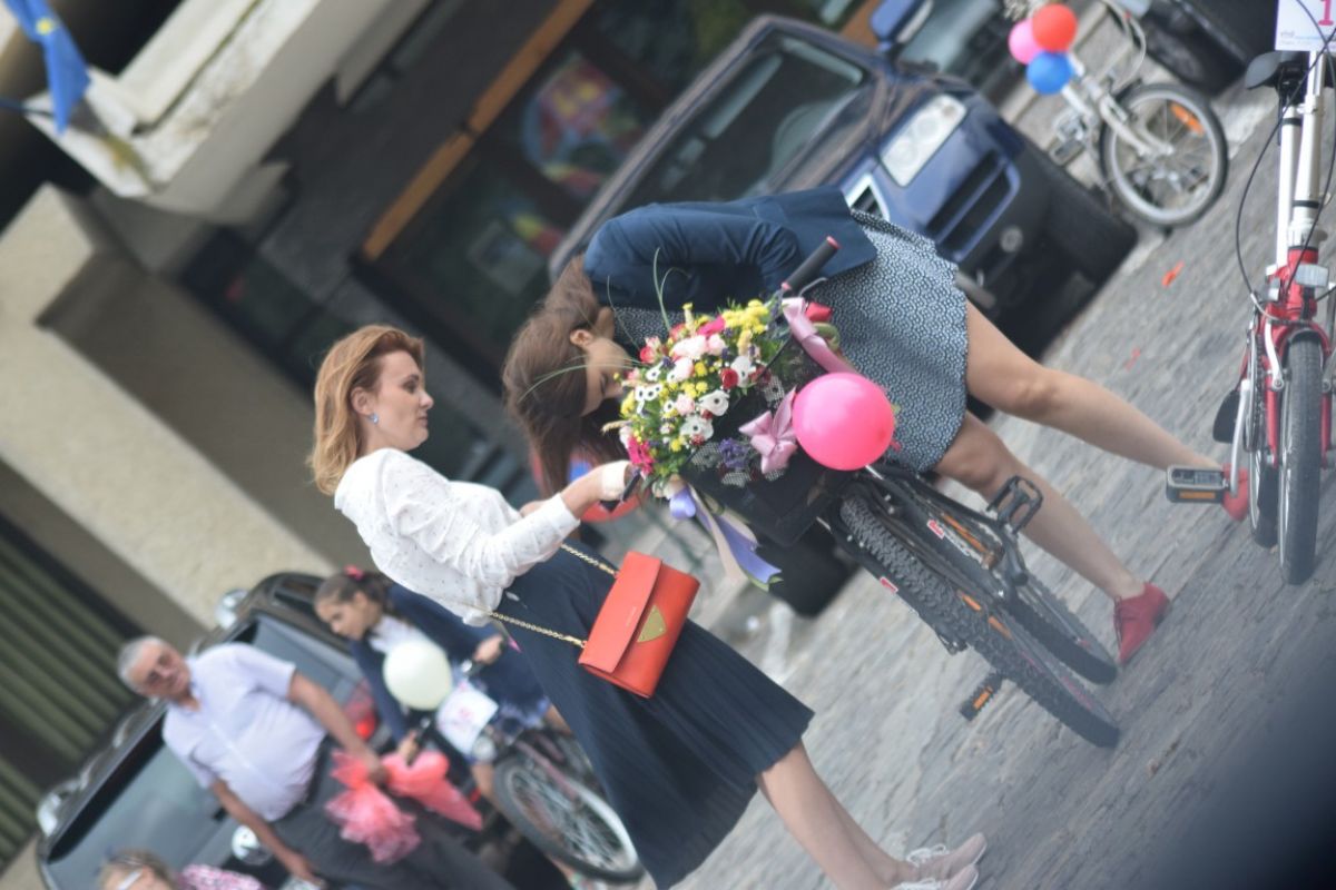 Întâi au venit trei fetițe. Apoi o mamă cu fiica ei. Apoi alte și alte persoane, fete în general, în fustițe și rochițe, cu flori în păr și pe ghidoanele sau roțile bicicletelor. Și ceva băieți, care probabil au auzit de acțiune și au vrut să le încurajeze pe reprezentantele sexului frumos.