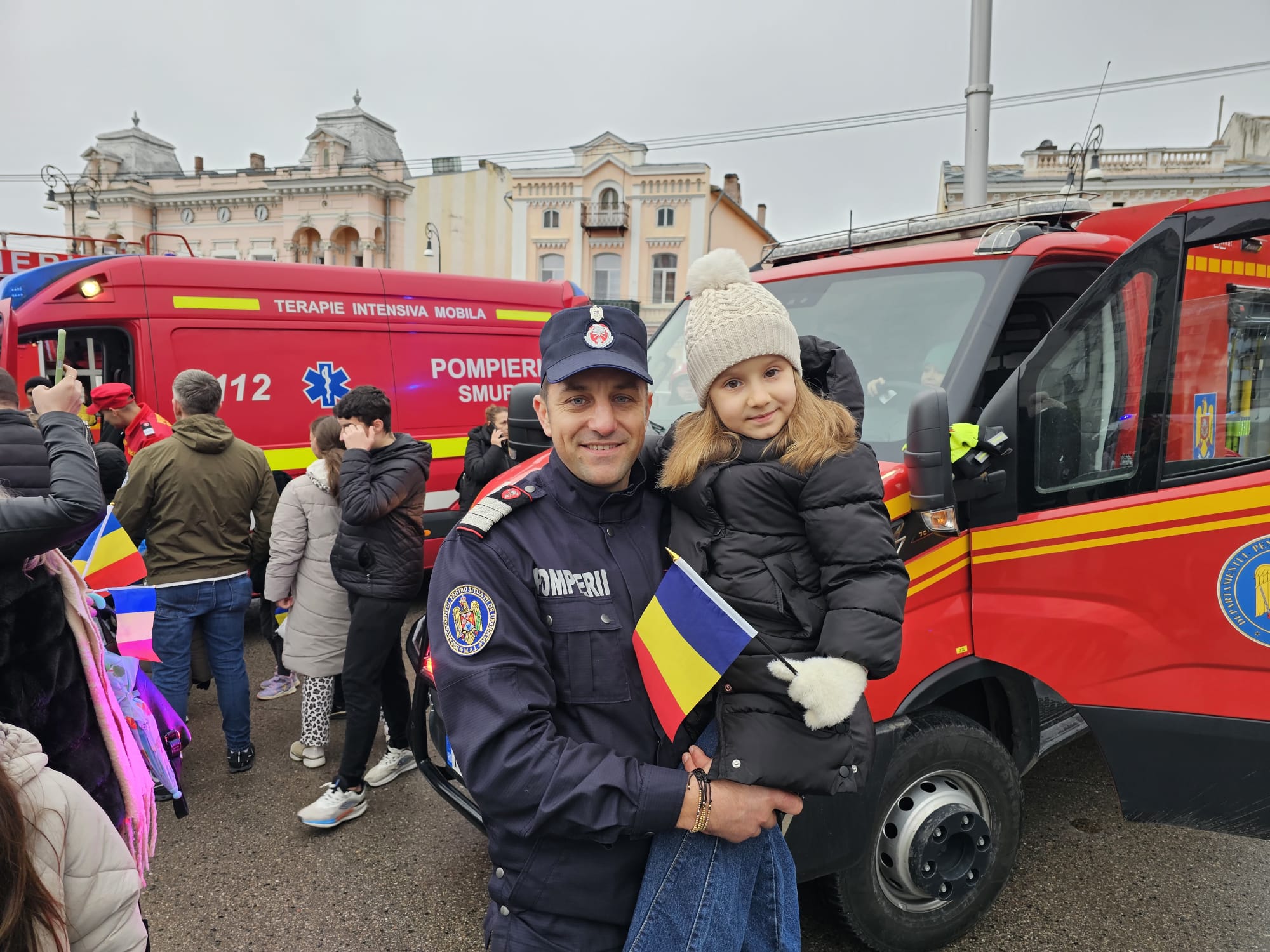 Pompierii botoșăneni au sărbătorit Ziua Națională a României alături de sute de botoșăneni care au venit, cu bucurie și curiozitate, să descopere lumea salvatorilor. În parcarea Elvila din municipiul Botoșani, acolo unde autospecialele și echipamentele forțelor de intervenție au fost expuse publicului, atmosfera a devenit una de sărbătoare, încărcată de emoție, culori tricolore și multe zâmbete.