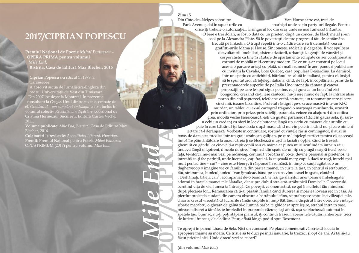 Memorialul Ipotești – Centrul Național de Studii Mihai Eminescu își propune, într-un parteneriat media cu ziarul Botoșăneanul, să prezinte, în fiecare săptămână, câte un laureat al Premiului Național de Poezie Mihai Eminescu – Opus Primum.