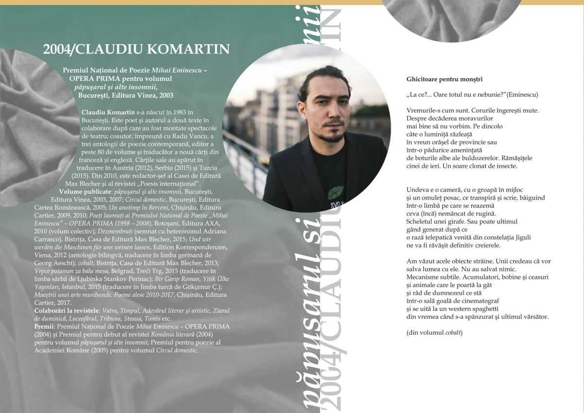 Memorialul Ipotești – Centrul Național de Studii Mihai Eminescu își propune, într-un parteneriat media cu ziarul Botoșăneanul, să prezinte, în fiecare săptămână, câte un laureat al Premiului Național de Poezie Mihai Eminescu – Opus Primum.