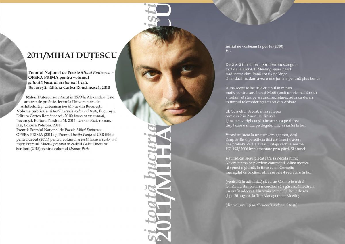 Memorialul Ipotești – Centrul Național de Studii Mihai Eminescu își propune, într-un parteneriat media cu ziarul Botoșăneanul, să prezinte, în ediția de duminică a rubricii GALERIA CU POEȚI, câte un laureat al Premiului Național de Poezie Mihai Eminescu – Opus Primum.