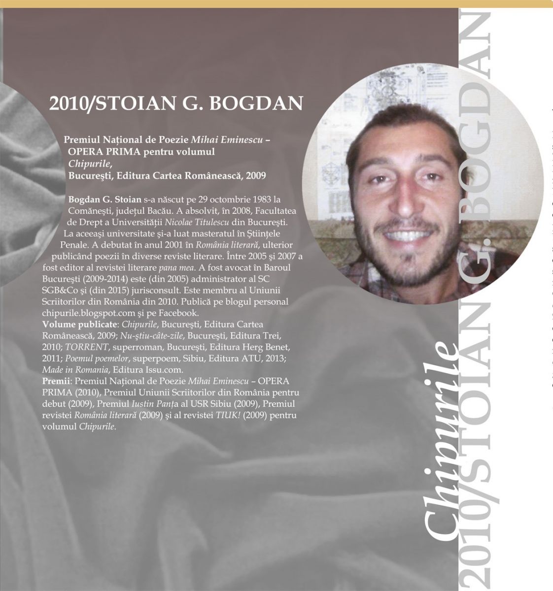 Memorialul Ipotești – Centrul Național de Studii Mihai Eminescu își propune, într-un parteneriat media cu ziarul Botoșăneanul, să prezinte, în ediția de duminică a rubricii GALERIA CU POEȚI, câte un laureat al Premiului Național de Poezie Mihai Eminescu – Opus Primum.