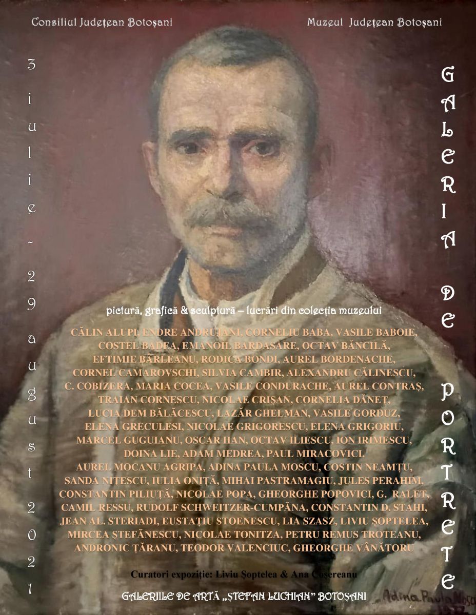 Muzeul Judeţean Botoşani - Secția de Artă plastică și Etnografie organizează, în perioada 3 iulie – 29 august 2021, la Galeriile de Artă ”Ștefan Luchian” Botoșani, expoziția ”Galeria cu portrete”.