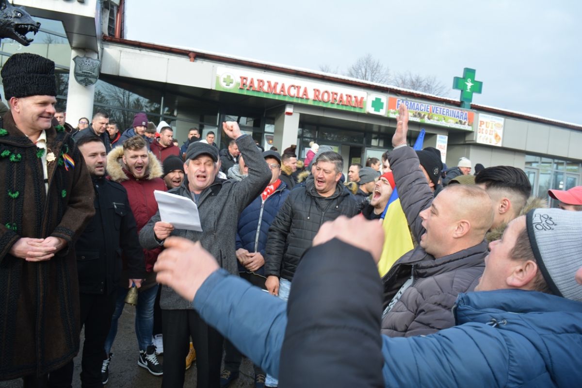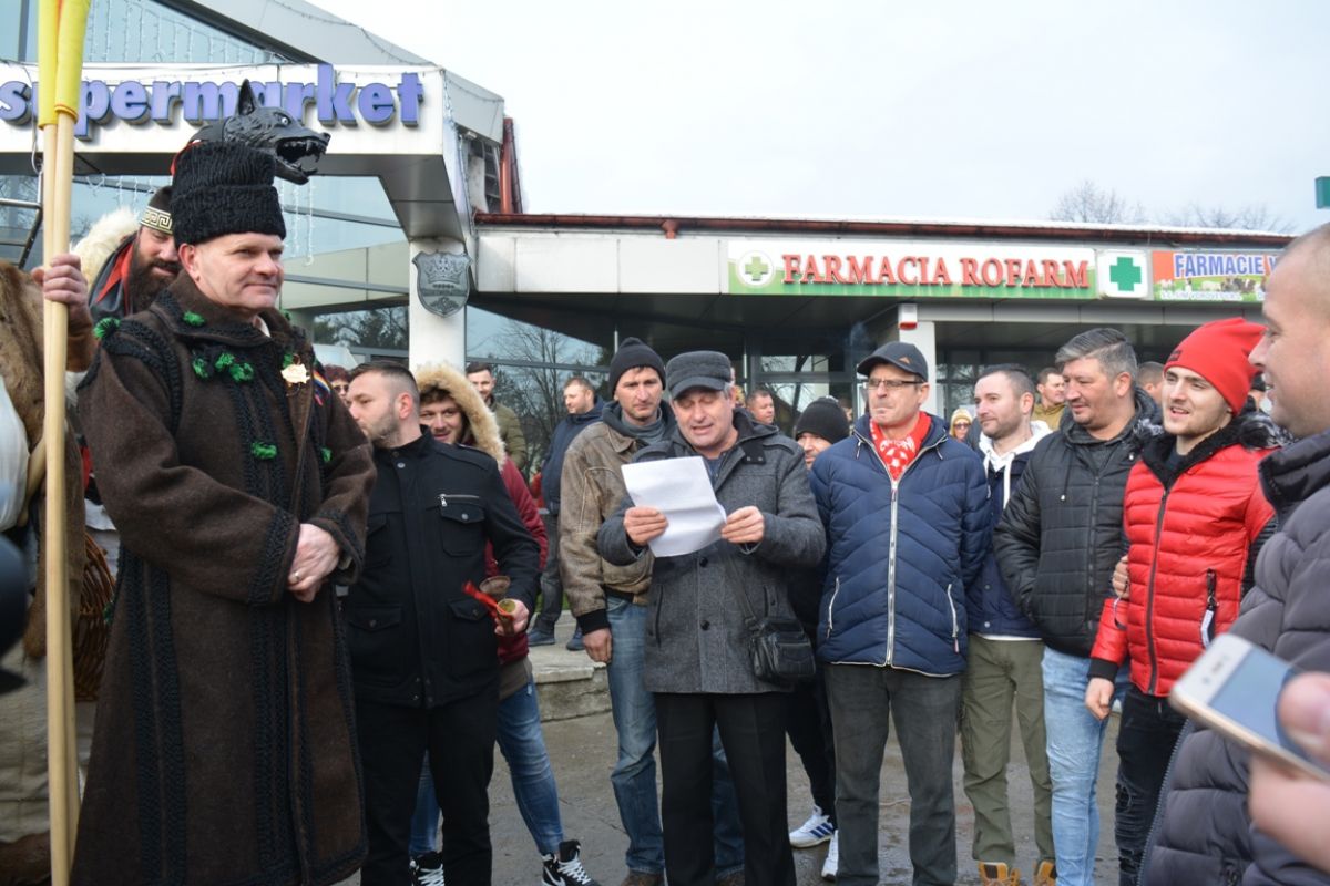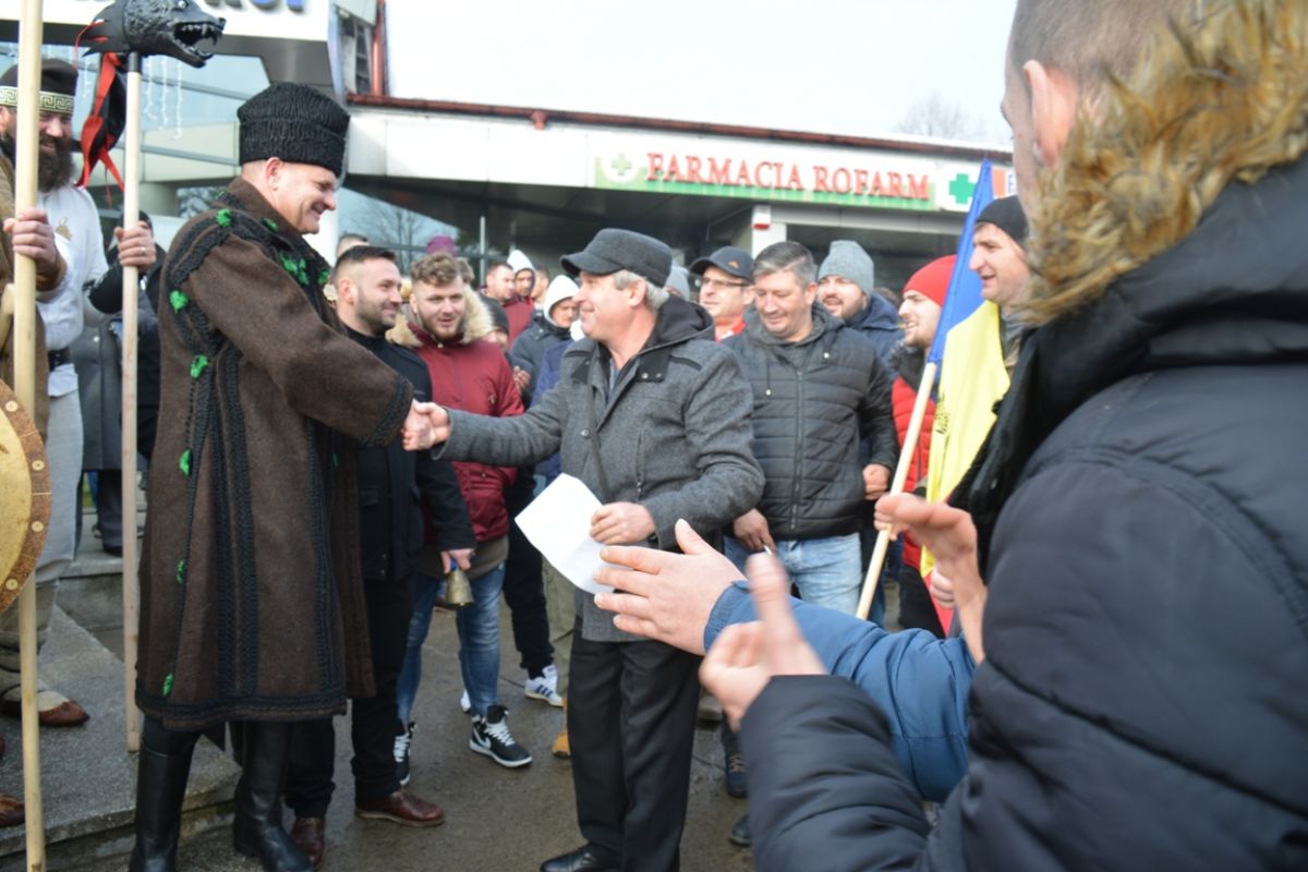 Băieții s-au întâlnit în centrul comunei cu Cornel Șfaițer și l-au urat în fața magazinului și a restaurantului Crescendo pe care familia omului de afaceri le dețin în amintita localitate.