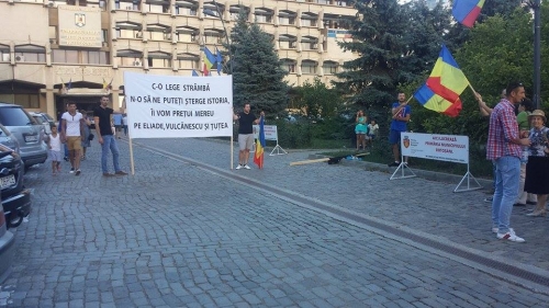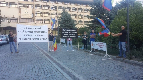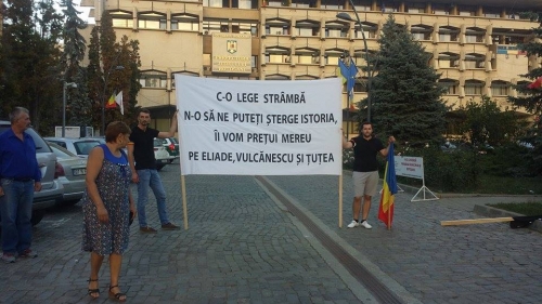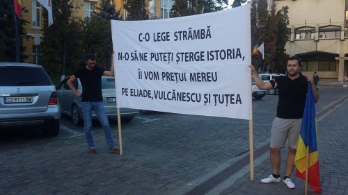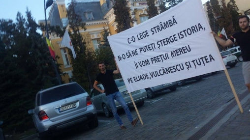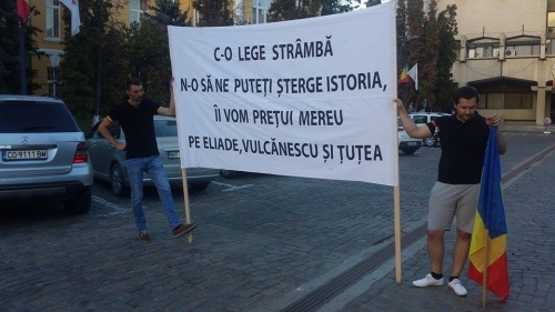 Protestatarul a mai adăugat că mesajul de pe bannerul alb (n.r.: cel redactat mai sus) este referitor la Legea 217, care include în textul ei și cuvântul legionar.