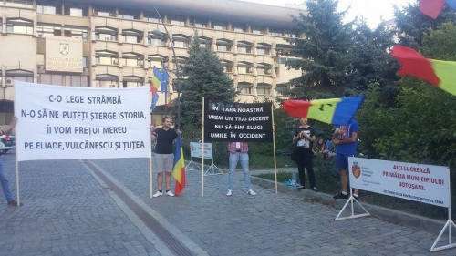 Duminică seară, 20 septembrie 2015, cinci tineri care s-au săturat de modul cum este condus marele vas - ”România” și de cei care se află la cârma acestuia, s-au adunat lângă Primăria municipiului Botoșani înarmați cu o portavoce, câteva steaguri, pancarte și cu multă speranță. Protestează și scandează până rămân aproape fără glas și flutură cu toată puterea tricolorul țării. Un alt mesaj inscripționat pe o pancartă albă mare este acela că, ”c-o lege strâmbă n-o să ne puteți șterge istoria, îi vom prețui mereu pe Eliade, Vulcănescu și Țuțea”.