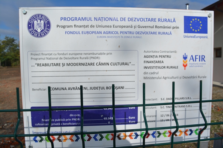 În decembrie 2013 Primăria Avrămeni a perfectat cu GAL Valea Başeului de Sus contractul de finanţare pentru reabilitarea căminului cultural, care mai funcţiona doar teoretic într-o clădire ridicată în urmă cu 110 ani. Era practic singurul al comunei şi nu mai putea găzdui nici o activitate fiindcă, după cum o spune chiar viceprimarul, „cădea tavanul la oameni în cap”.