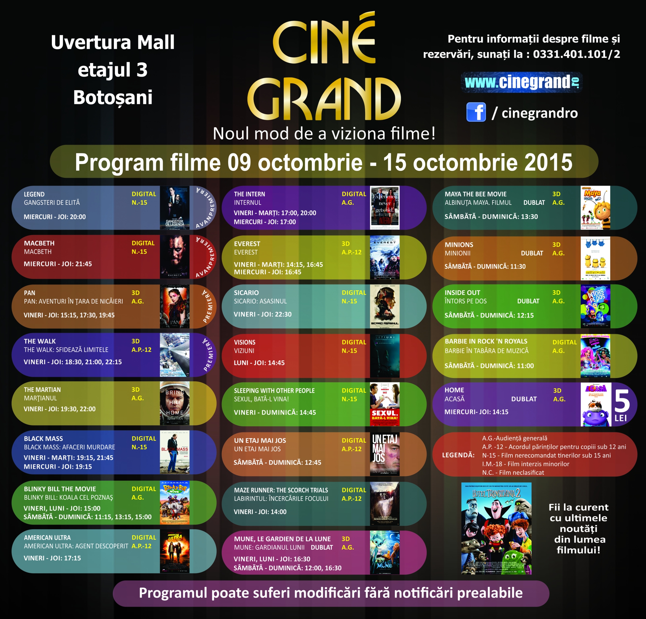 Prima jumătate a lunii octombrie aduce pentru cinefilii botoșăneni filme noi pe marile ecrane ale multiplexului din incinta Uvertura Mall. Cei care vor să se relaxeze într-o atmosferă plăcută a filmului pot viziona o avanpremieră cu gangsteri de legendă.
