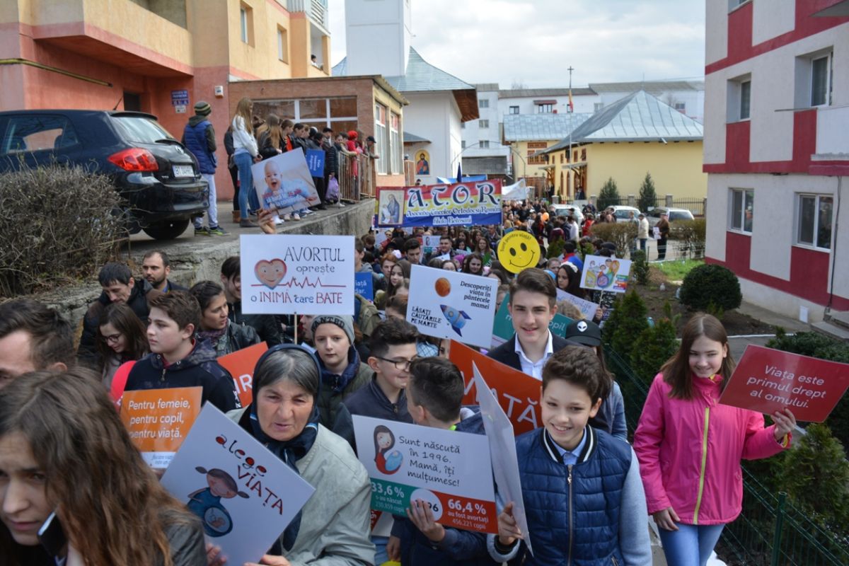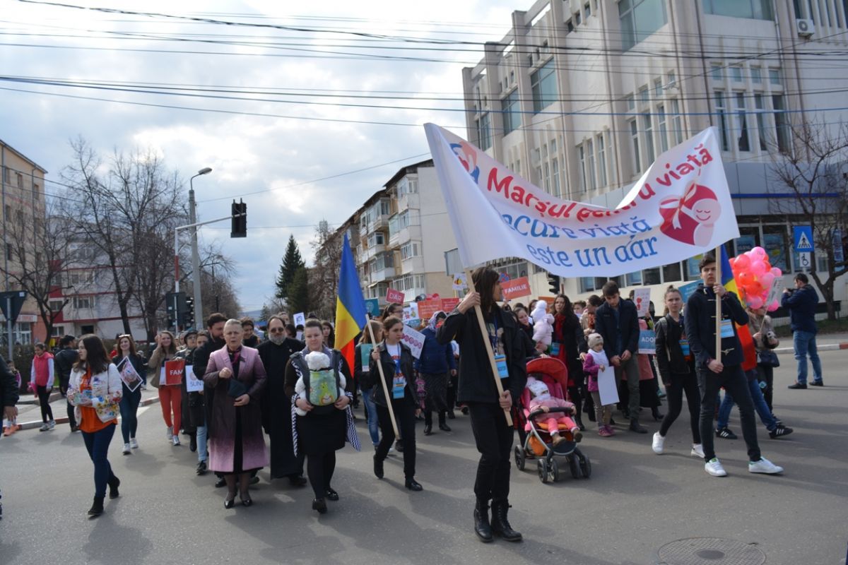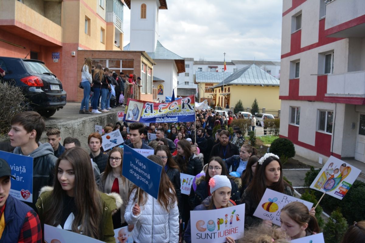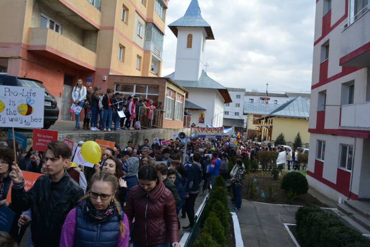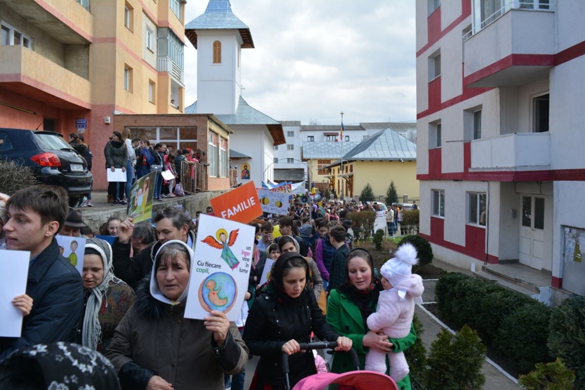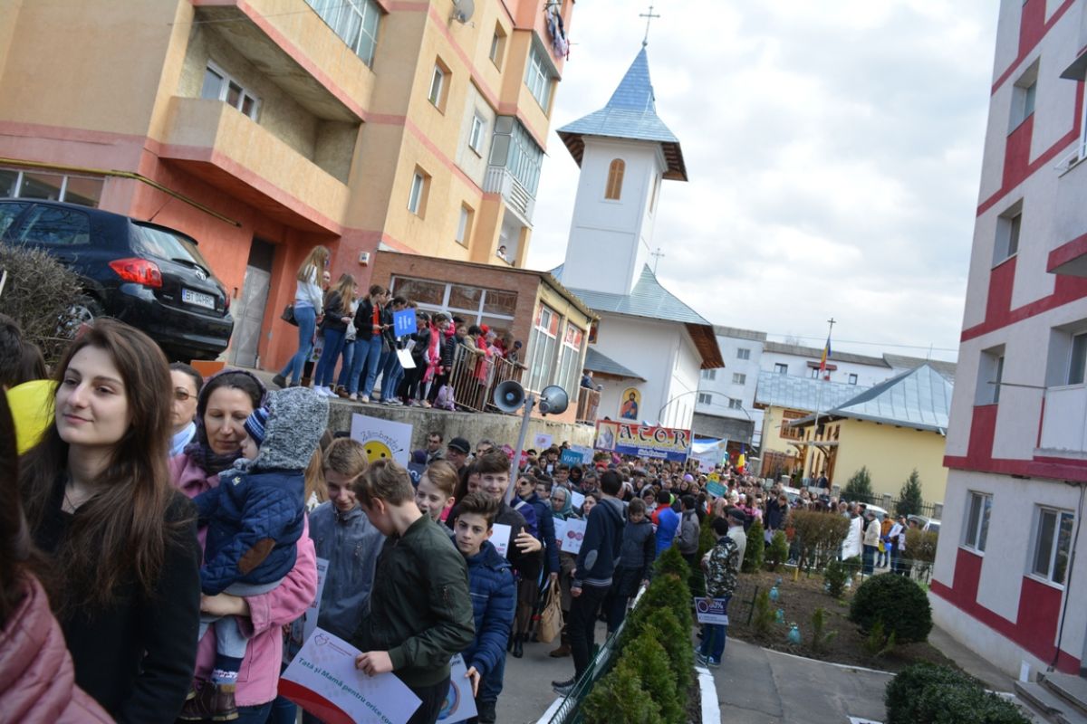 Li s-au adăugat în jur de 20 de preoți, inclusiv părintele protopop și împreună au plecat într-un marș pe principalele străzi ale orașului. Au făcut-o rostind rugăciuni, ”Împărate ceresc” și ”Cu noi este Dumnezeu”, iar de-a lungul procesiunii s-au auzit cântece religioase și melodii care făceau trimitere la părinți, la copii, la miracolul nașterii.