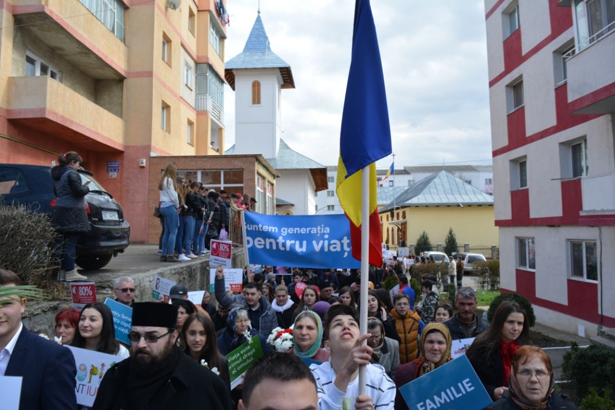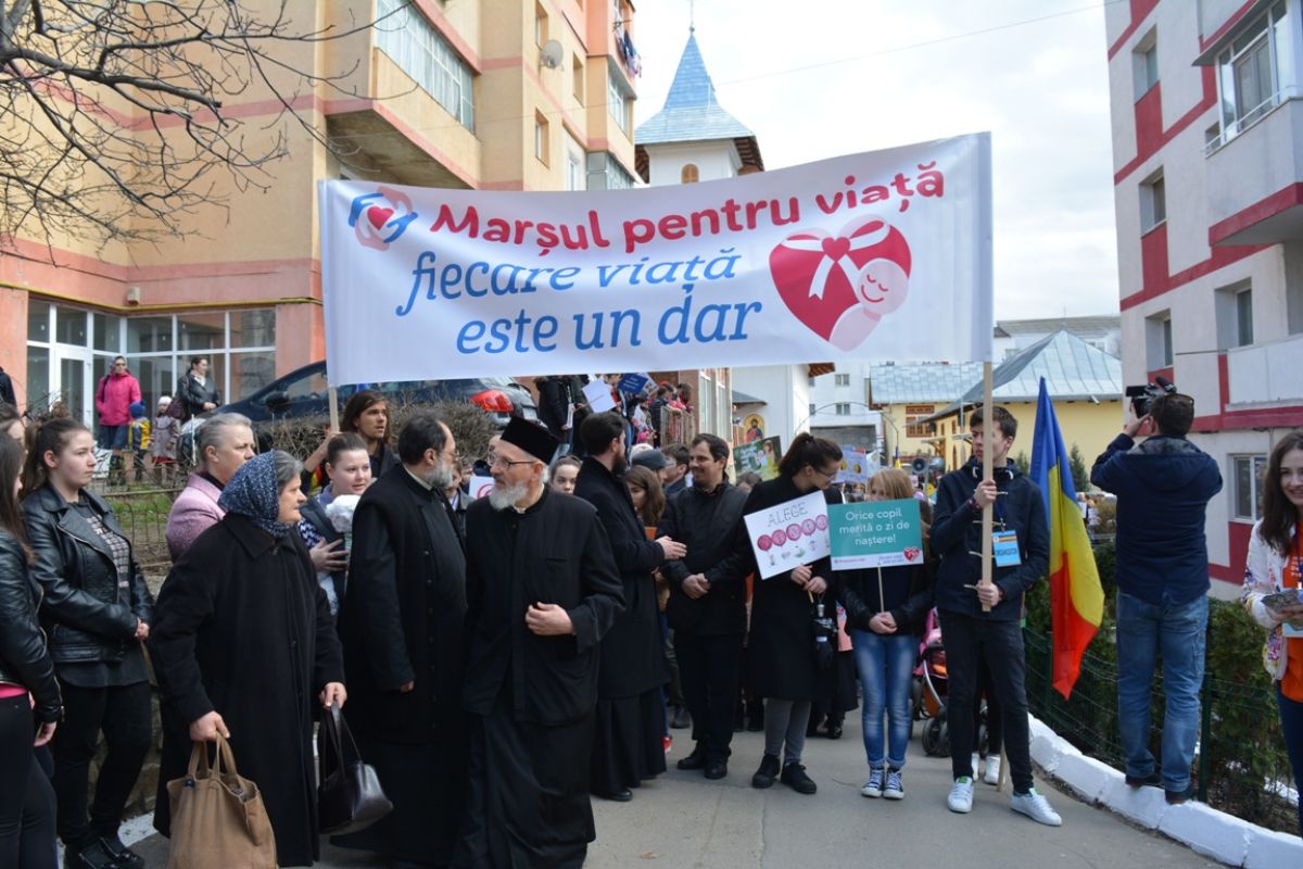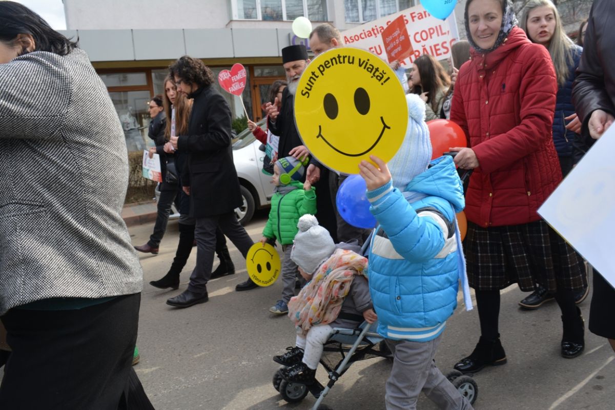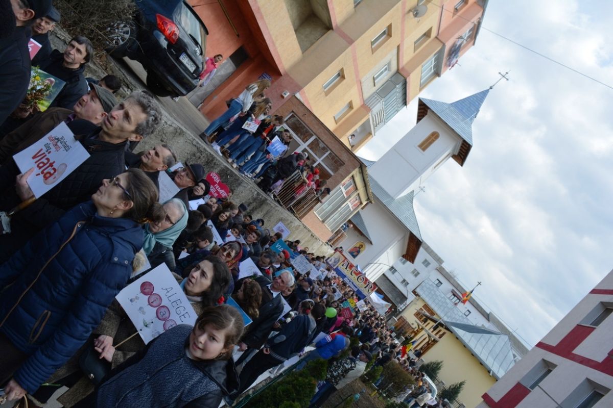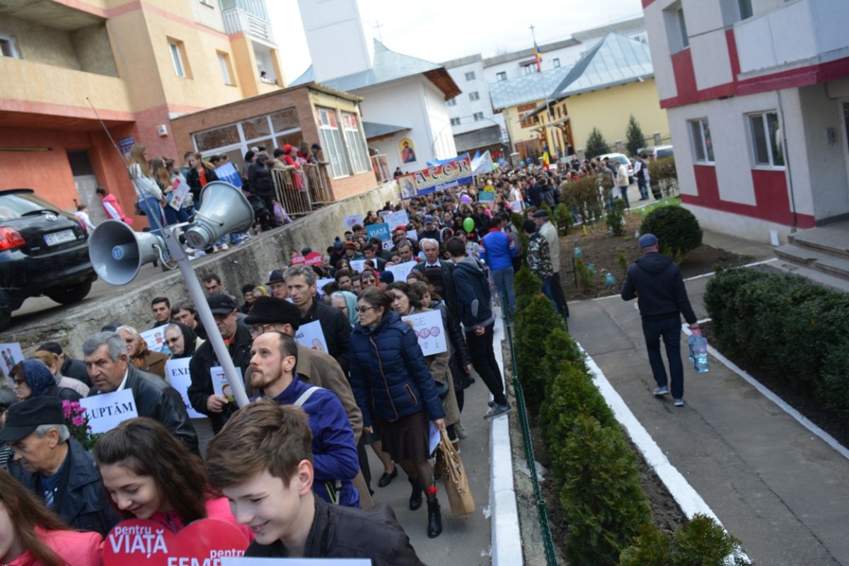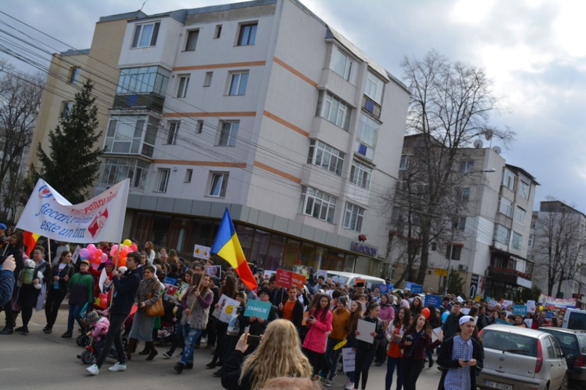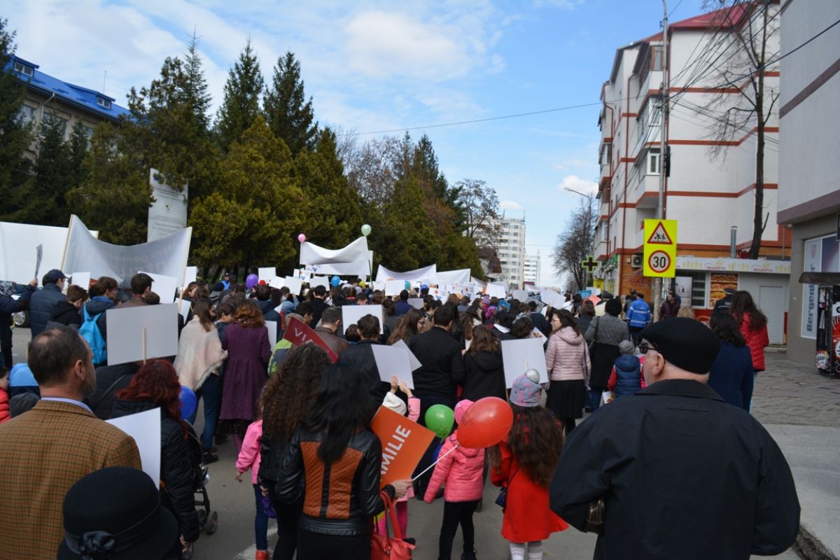 Li s-au adăugat în jur de 20 de preoți, inclusiv părintele protopop și împreună au plecat într-un marș pe principalele străzi ale orașului. Au făcut-o rostind rugăciuni, ”Împărate ceresc” și ”Cu noi este Dumnezeu”, iar de-a lungul procesiunii s-au auzit cântece religioase și melodii care făceau trimitere la părinți, la copii, la miracolul nașterii.