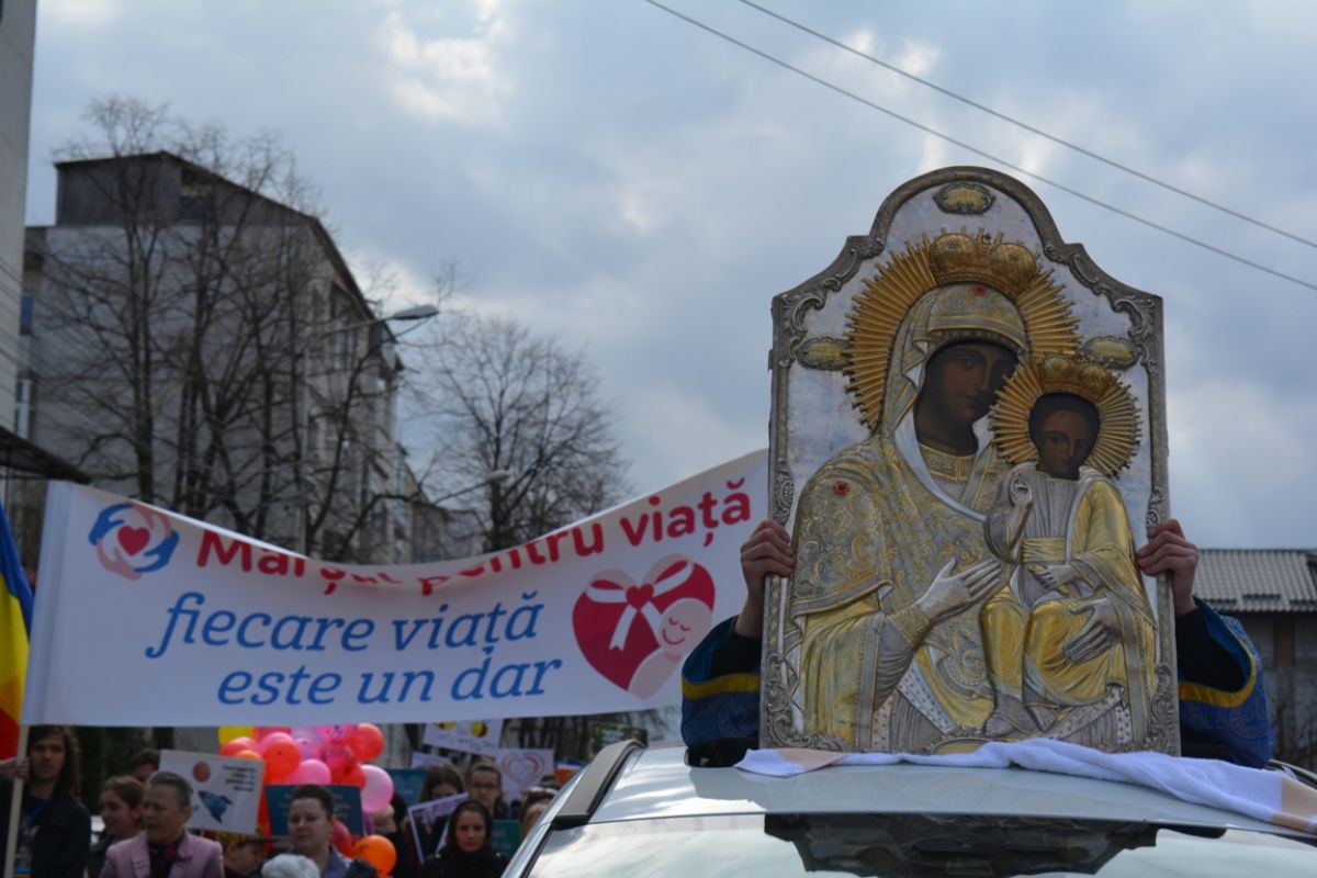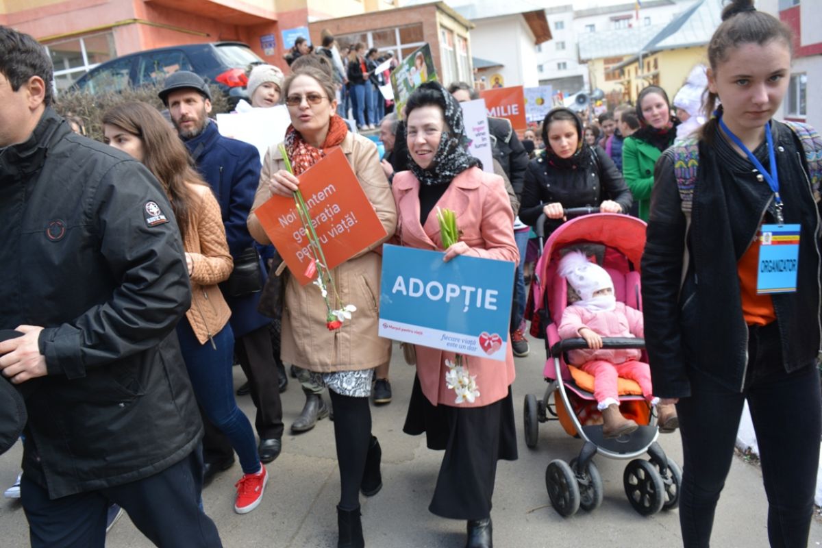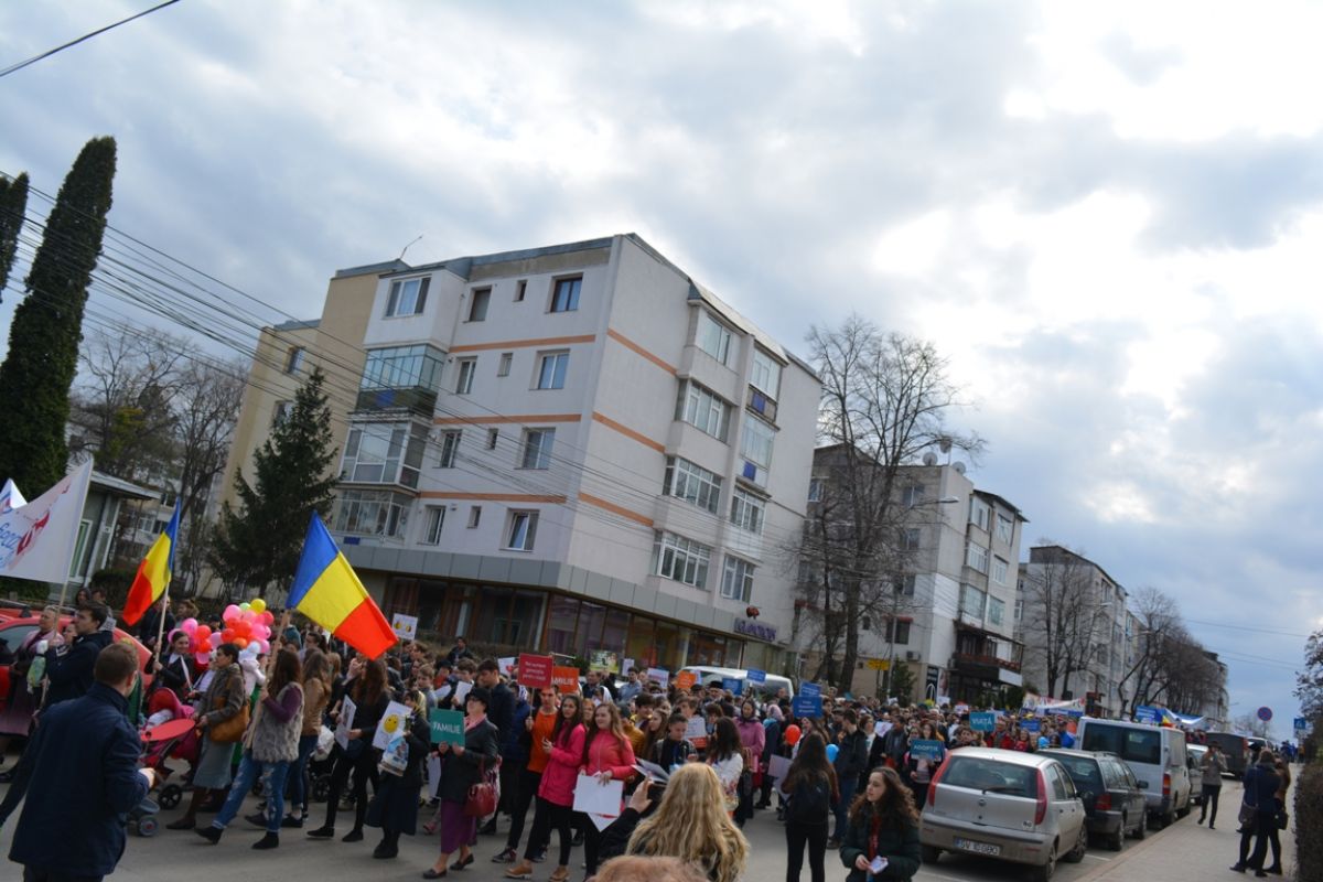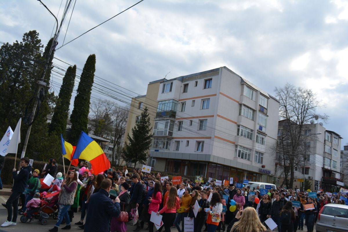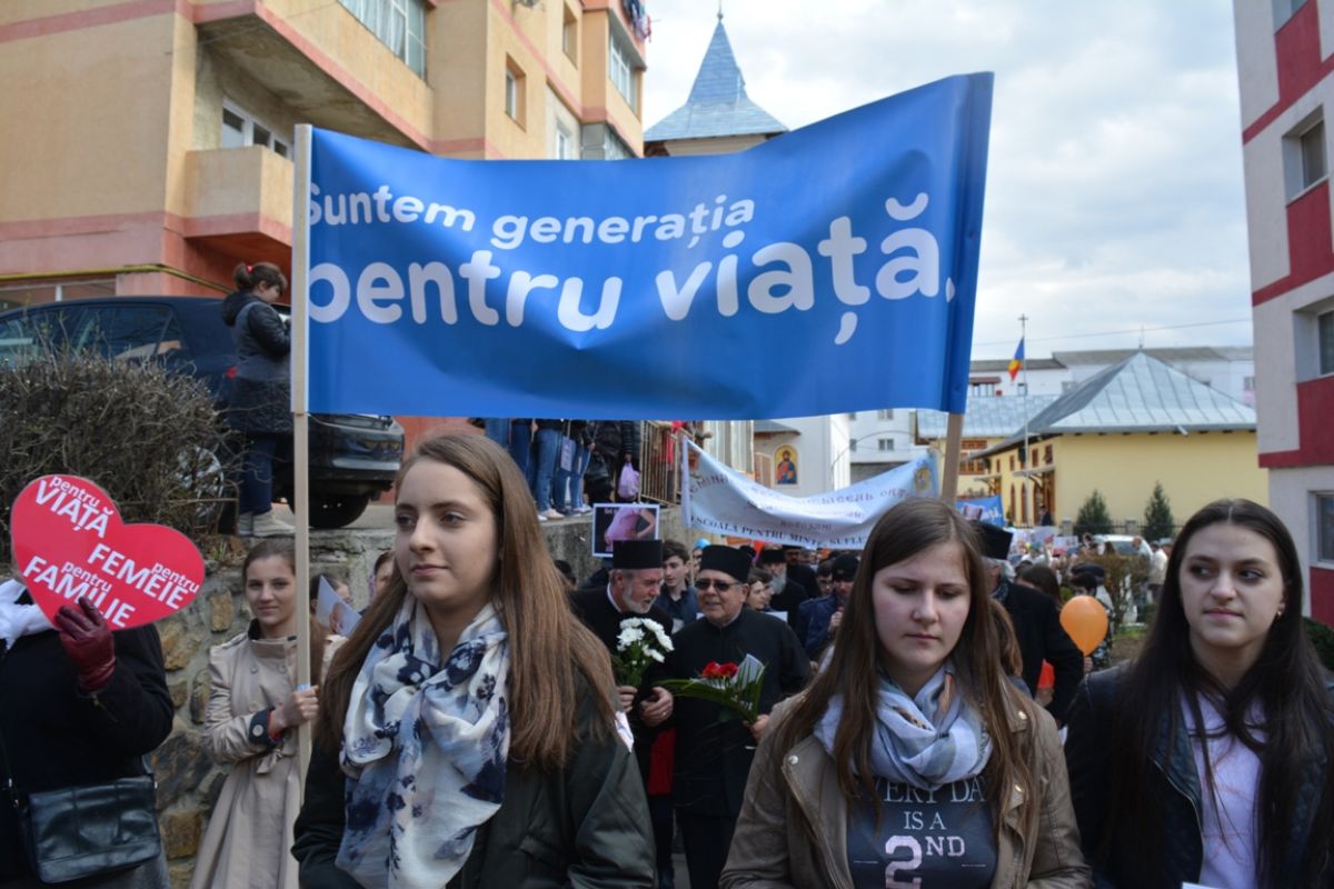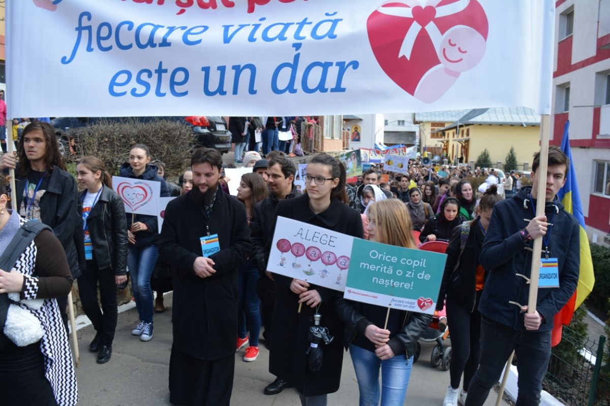 Li s-au adăugat în jur de 20 de preoți, inclusiv părintele protopop și împreună au plecat într-un marș pe principalele străzi ale orașului. Au făcut-o rostind rugăciuni, ”Împărate ceresc” și ”Cu noi este Dumnezeu”, iar de-a lungul procesiunii s-au auzit cântece religioase și melodii care făceau trimitere la părinți, la copii, la miracolul nașterii.