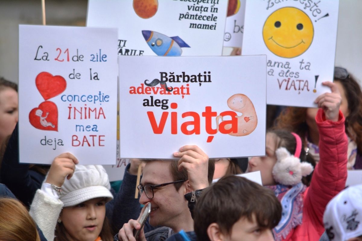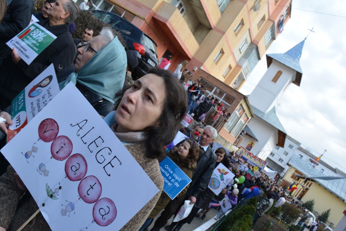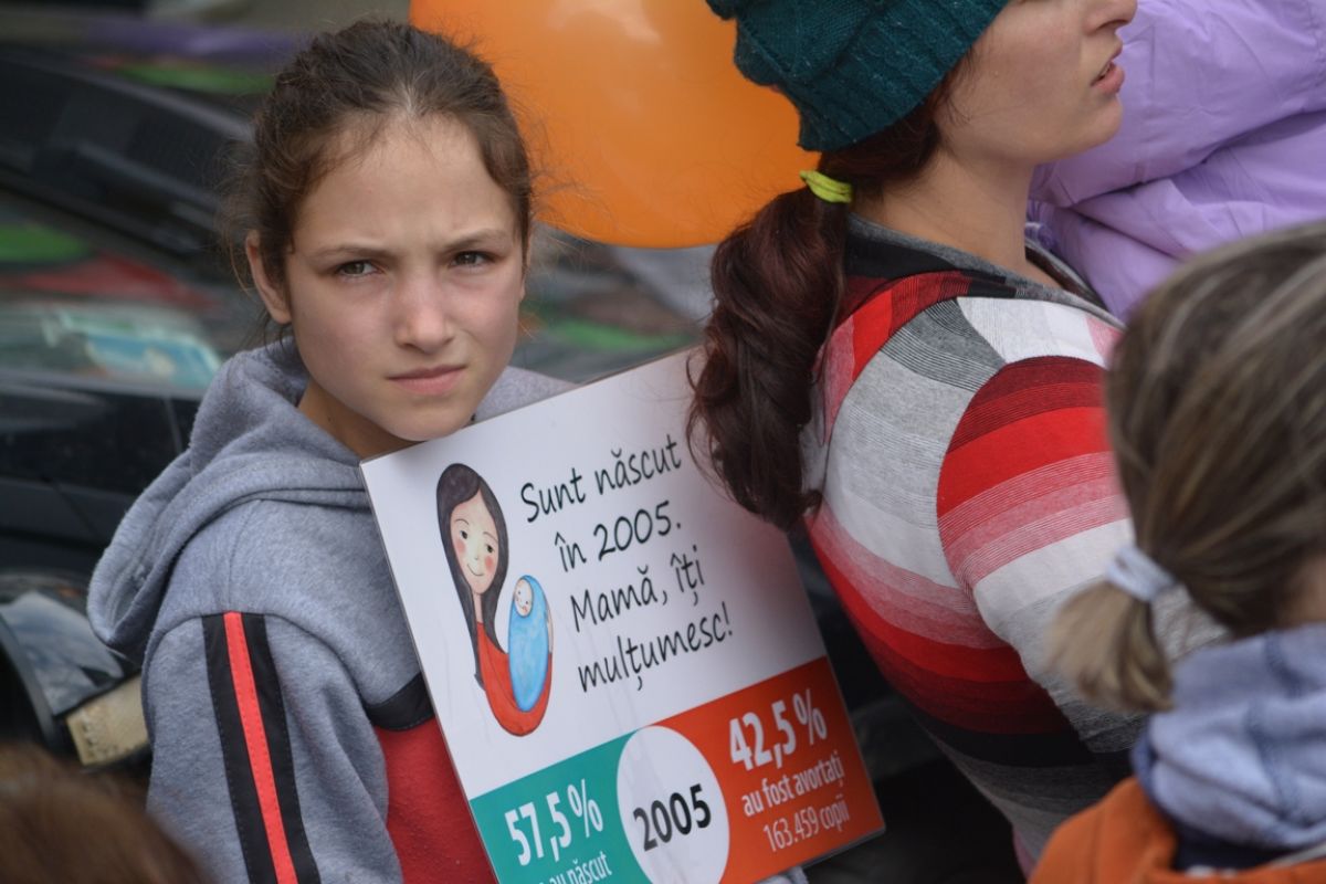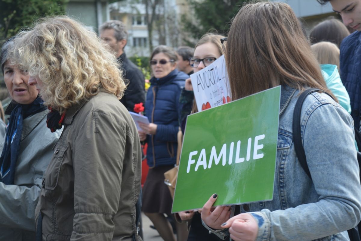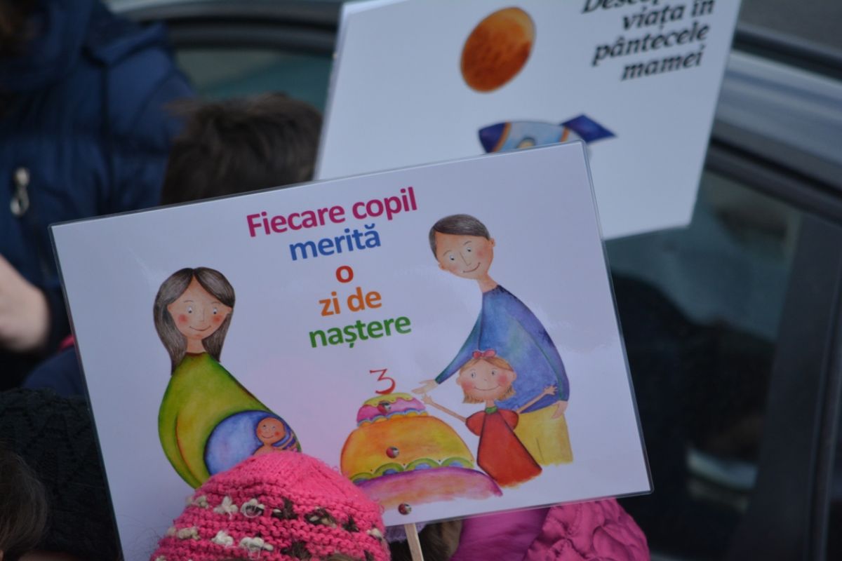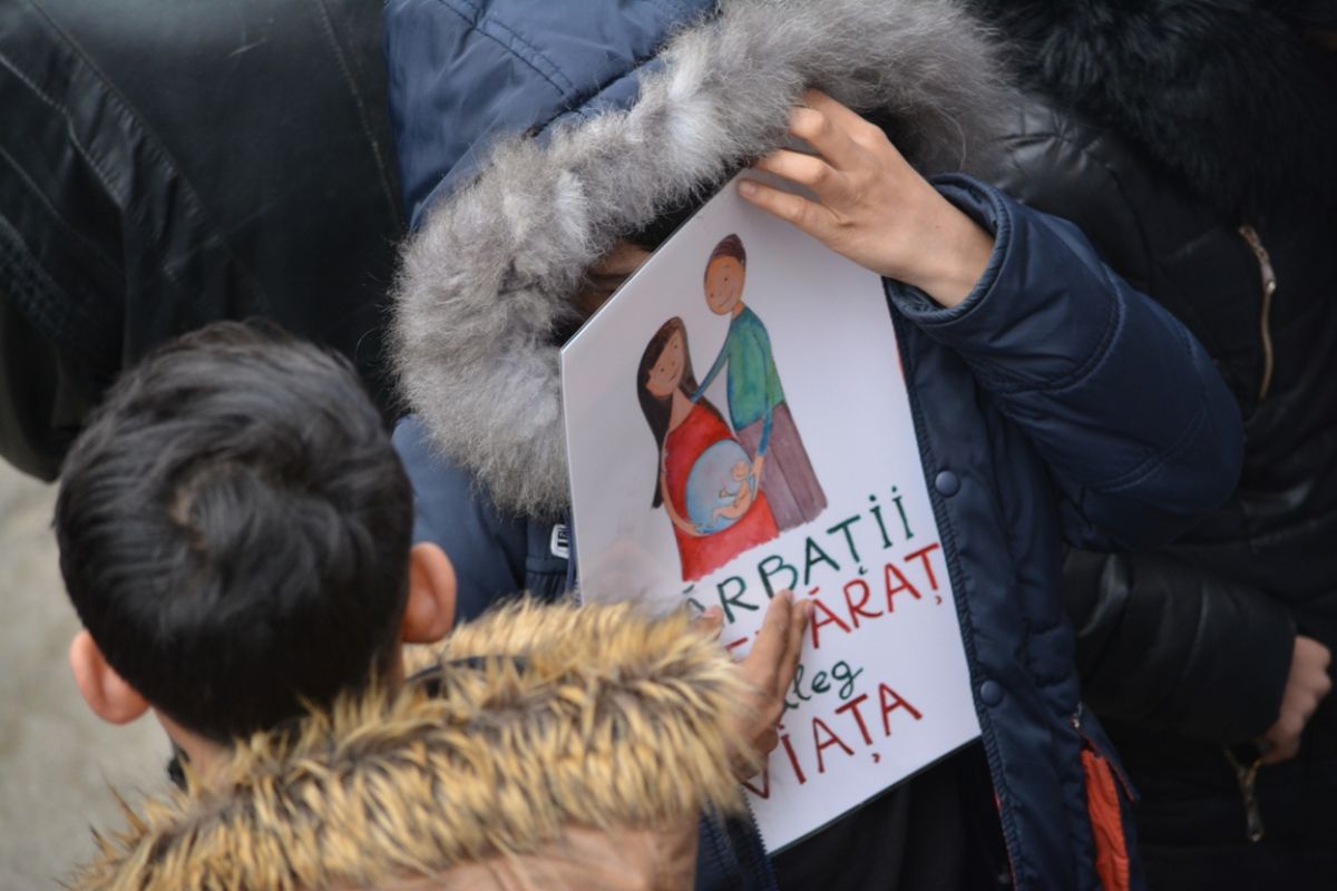 Părinți și copii, tineri și bătrâni, profesori și elevi, femei și bărbați, undeva la 2.000 de oameni - după ce erau aproximativ 1.000 cu câteva minute înainte de ora 14:00, cea oficială a acțiunii - s-au strâns sâmbătă la amiază la Biserica Buna Vestire pentru a milita împotriva întreruperii sarcinilor.