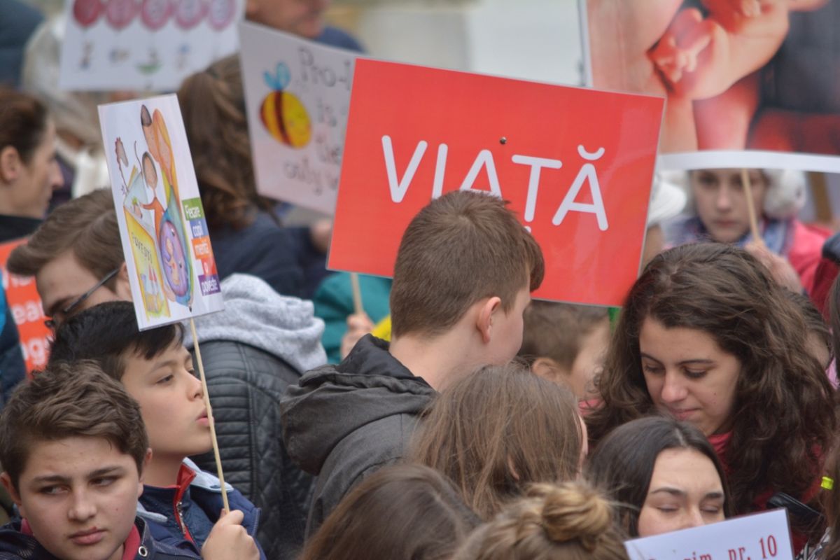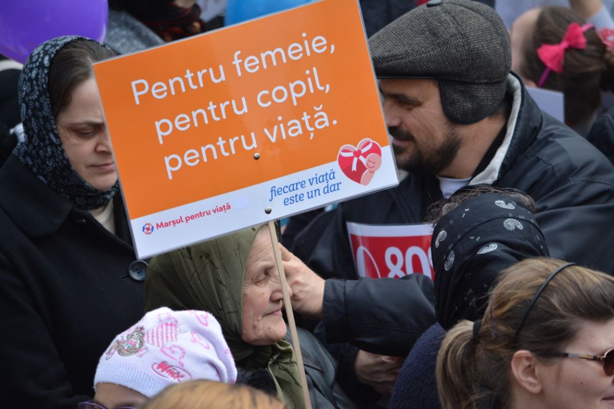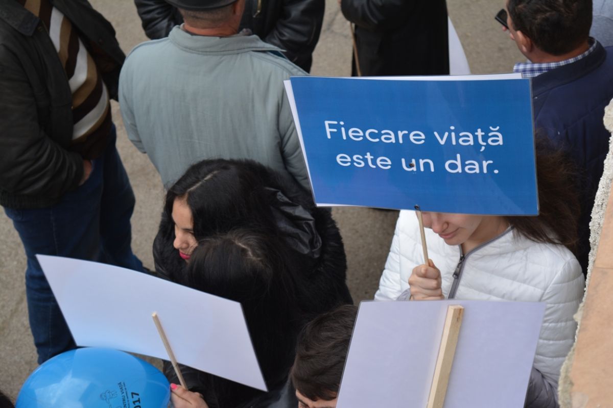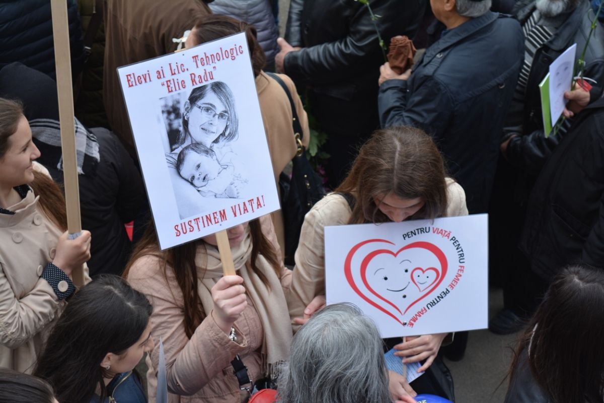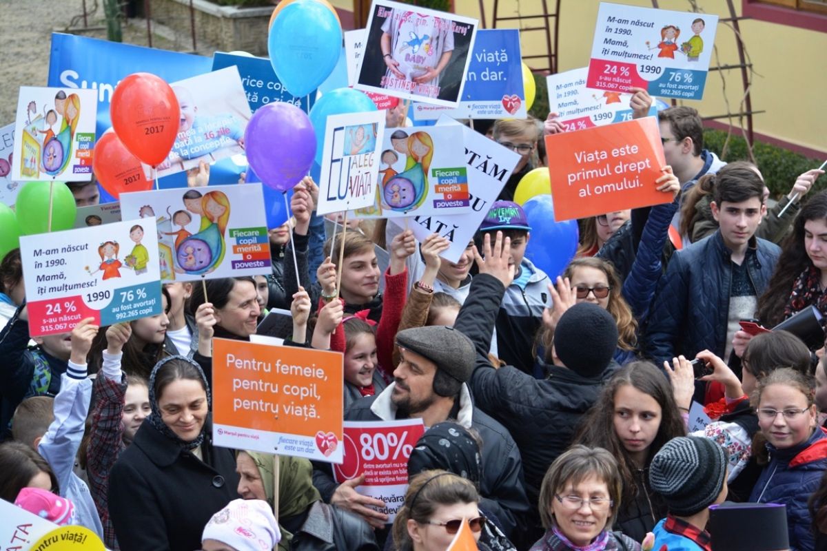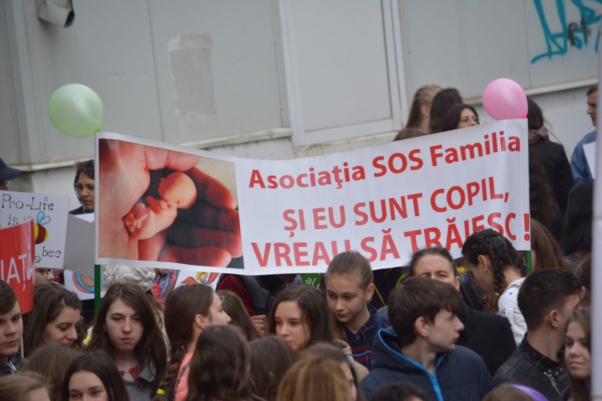 Părinți și copii, tineri și bătrâni, profesori și elevi, femei și bărbați, undeva la 2.000 de oameni - după ce erau aproximativ 1.000 cu câteva minute înainte de ora 14:00, cea oficială a acțiunii - s-au strâns sâmbătă la amiază la Biserica Buna Vestire pentru a milita împotriva întreruperii sarcinilor.