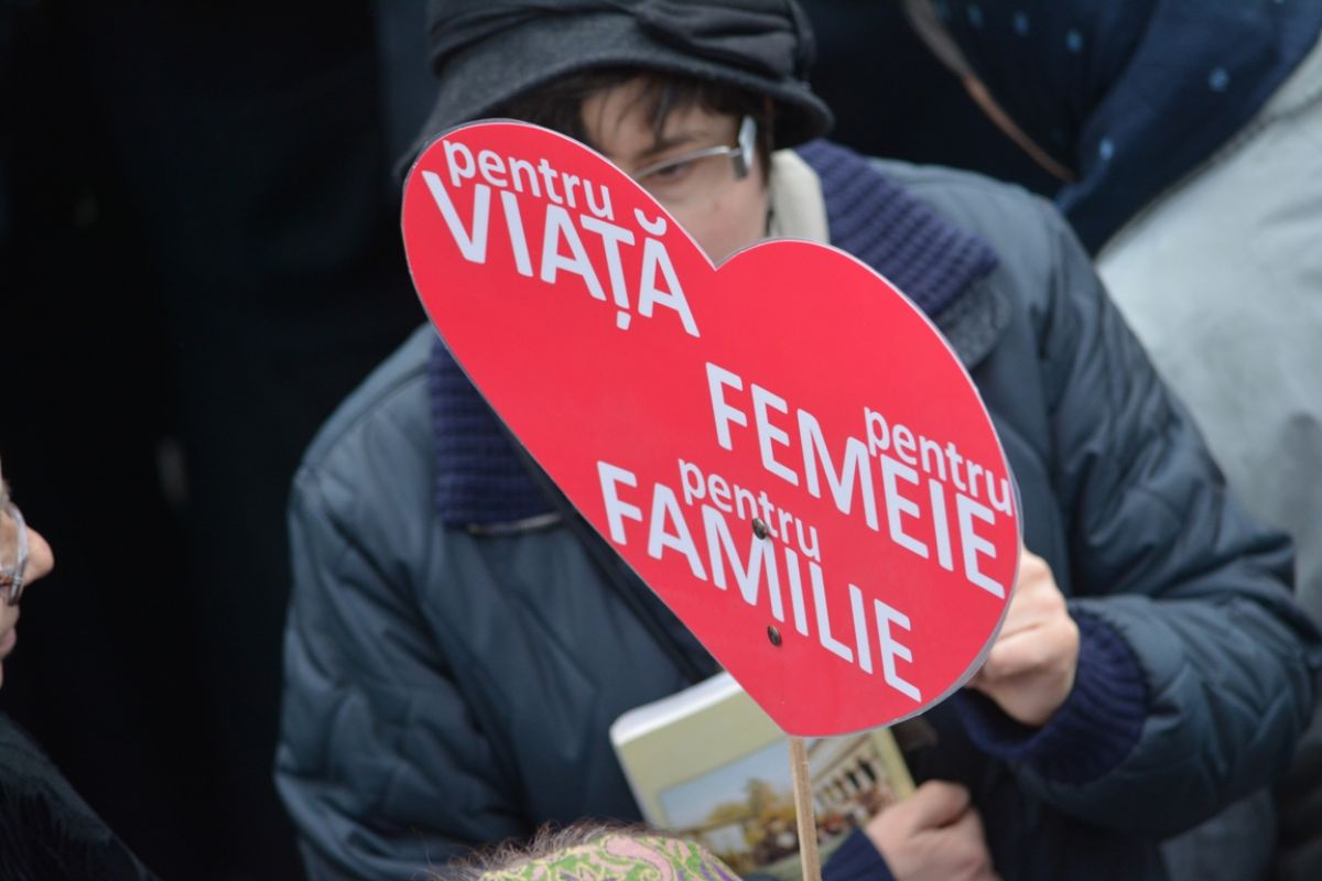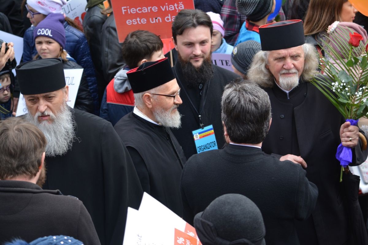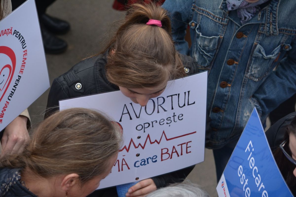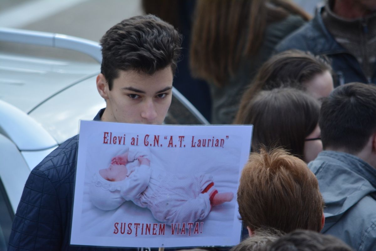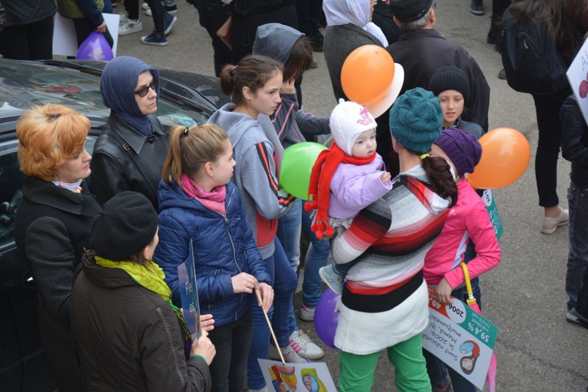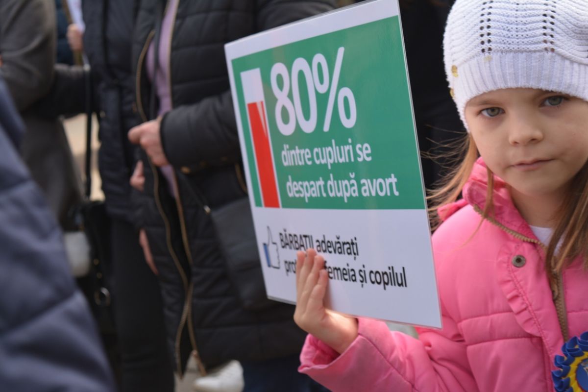 Părinți și copii, tineri și bătrâni, profesori și elevi, femei și bărbați, undeva la 2.000 de oameni - după ce erau aproximativ 1.000 cu câteva minute înainte de ora 14:00, cea oficială a acțiunii - s-au strâns sâmbătă la amiază la Biserica Buna Vestire pentru a milita împotriva întreruperii sarcinilor.