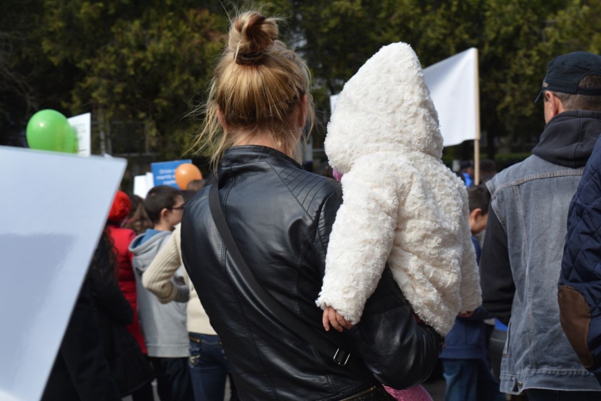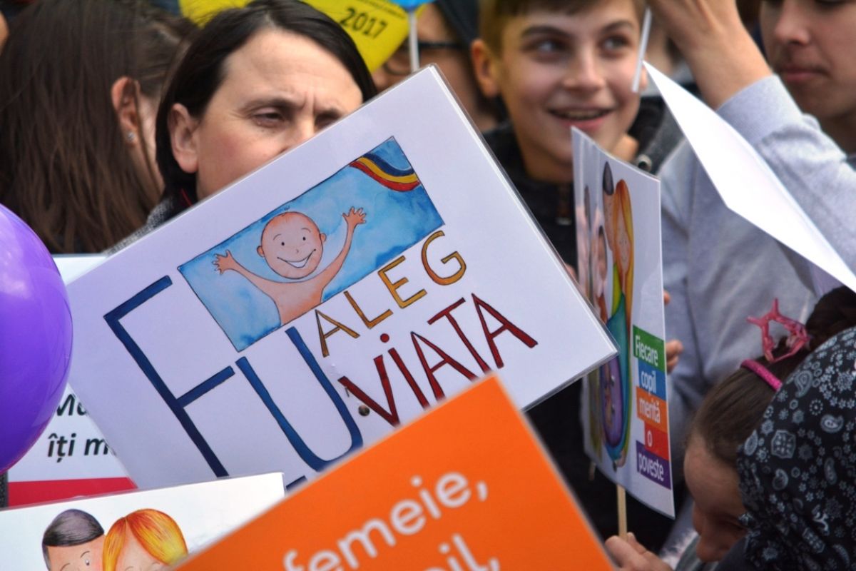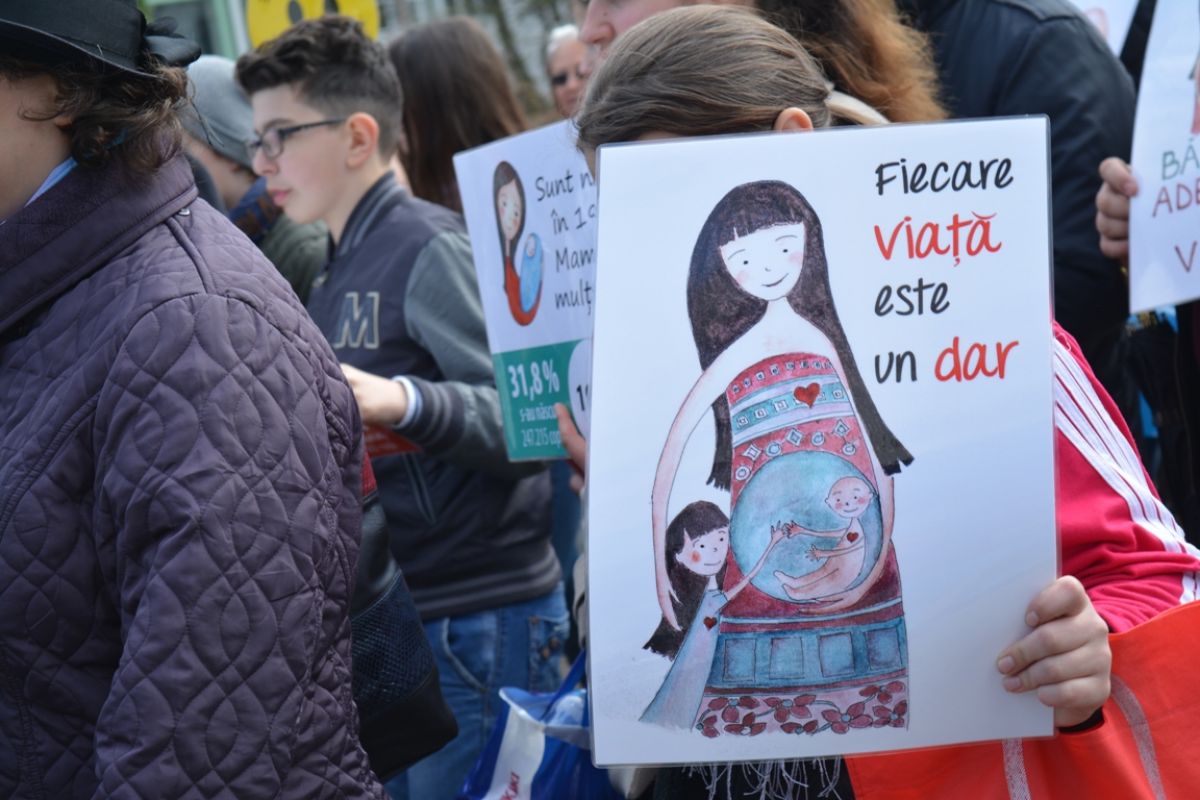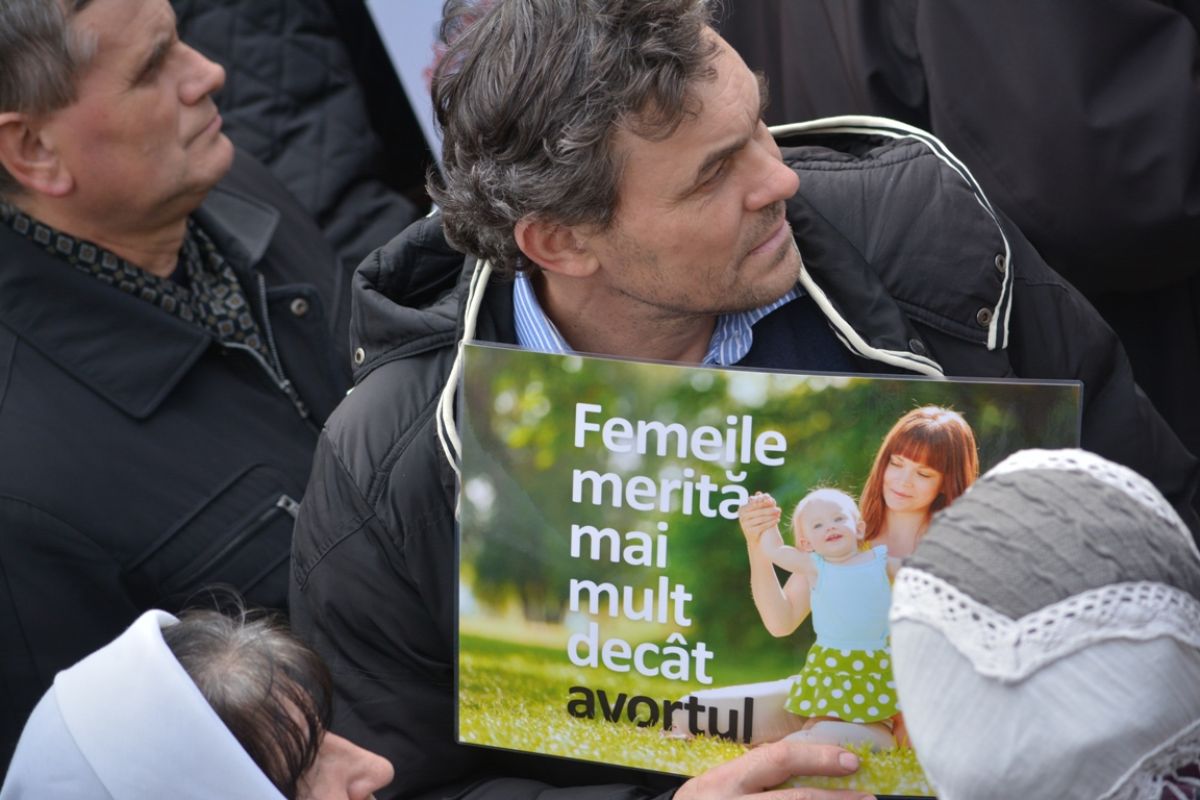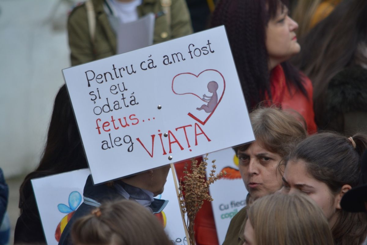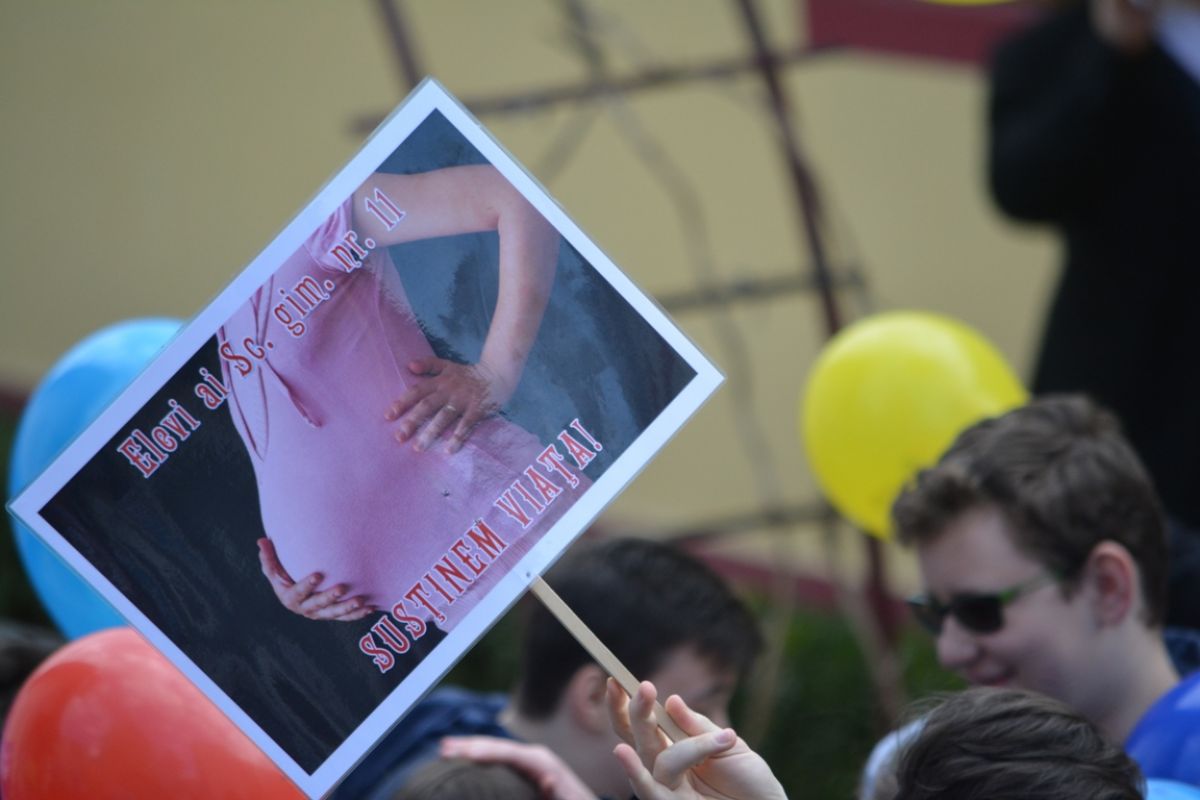 Părinți și copii, tineri și bătrâni, profesori și elevi, femei și bărbați, undeva la 2.000 de oameni - după ce erau aproximativ 1.000 cu câteva minute înainte de ora 14:00, cea oficială a acțiunii - s-au strâns sâmbătă la amiază la Biserica Buna Vestire pentru a milita împotriva întreruperii sarcinilor.