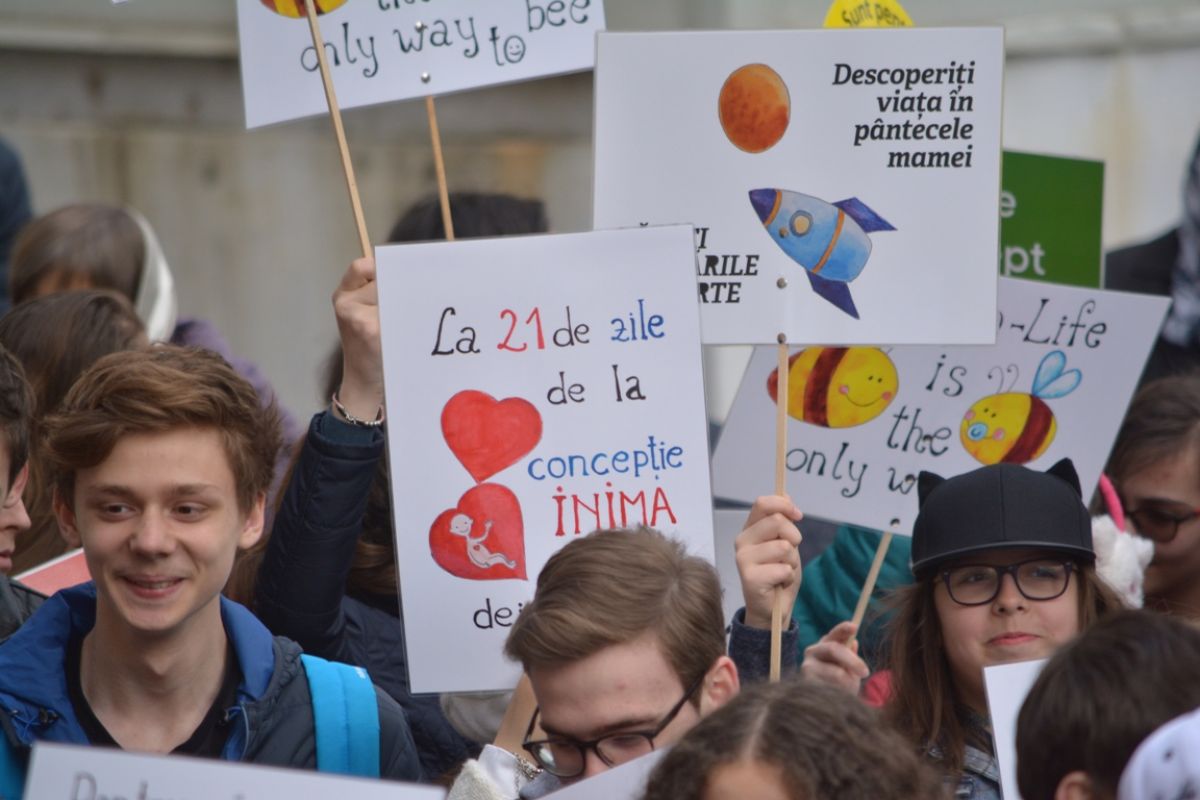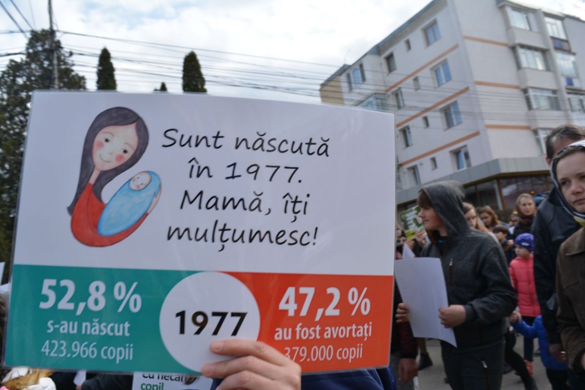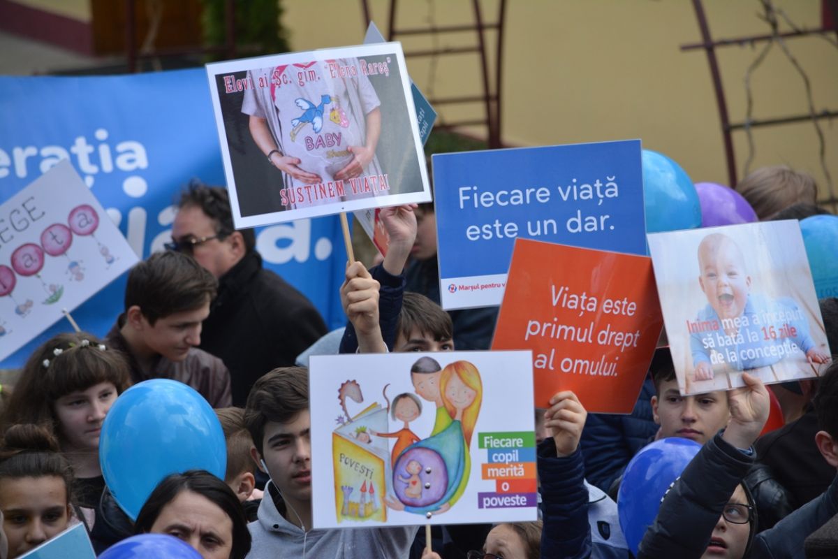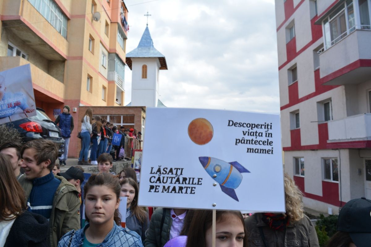 Manifestanții au agitat sute de pancarte cu mesaje emoționante, precum ”Suntem generația pentru viață”, ”Susținem viața”, ”Pentru viață, pentru femeie, pentru familie”, ”Bărbații adevărați aleg viața”, ”Femeile merită mai mult decât avortul”, ”Fiecare viață este un dar”, ”Viața este primul drept al omului”, ”Fiecare copil merită o poveste”, ”Lăsați căutările pe Marte, descoperiți viața în pântecele mamei”, ”Sunt iubire”, ”Zâmbește, mama ta a ales viața”, ”La 21 de zile de la concepție inima mea deja bate”.. Nu au lipsit nici mesajele prin care participanții la marș, fie ei mai tineri sau mai în etate, au afișat pancarte prin care mulțumeau părinților că le-au dat viață și nu au apelat la avort, indicând și anul nașterii.