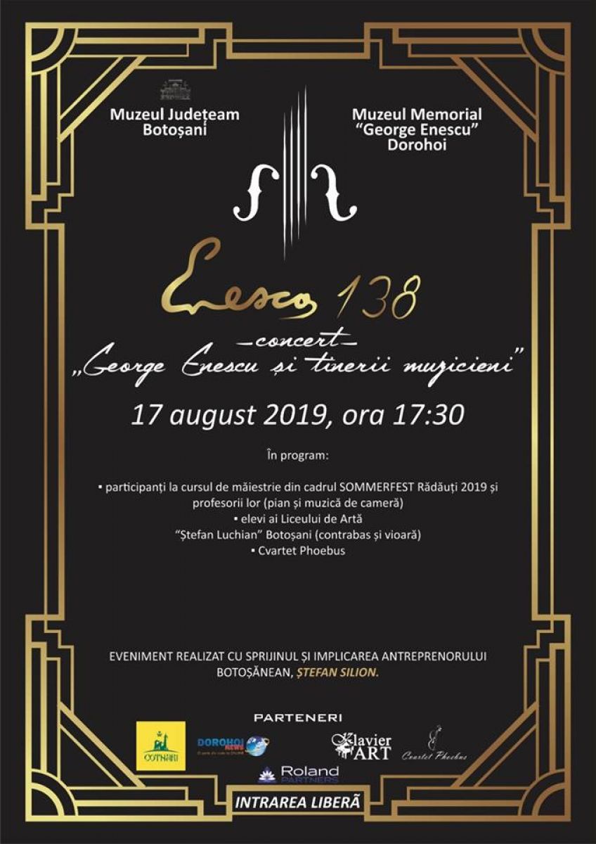 Pe data de 17 august 2019, la ora 17.30, la Muzeul Memorial ”George Enescu” din Dorohoi va avea loc un eveniment de excepție, menit să omagieze personalitatea celui mai mare compozitor al românilor, născut pe meleaguri botoșănene.