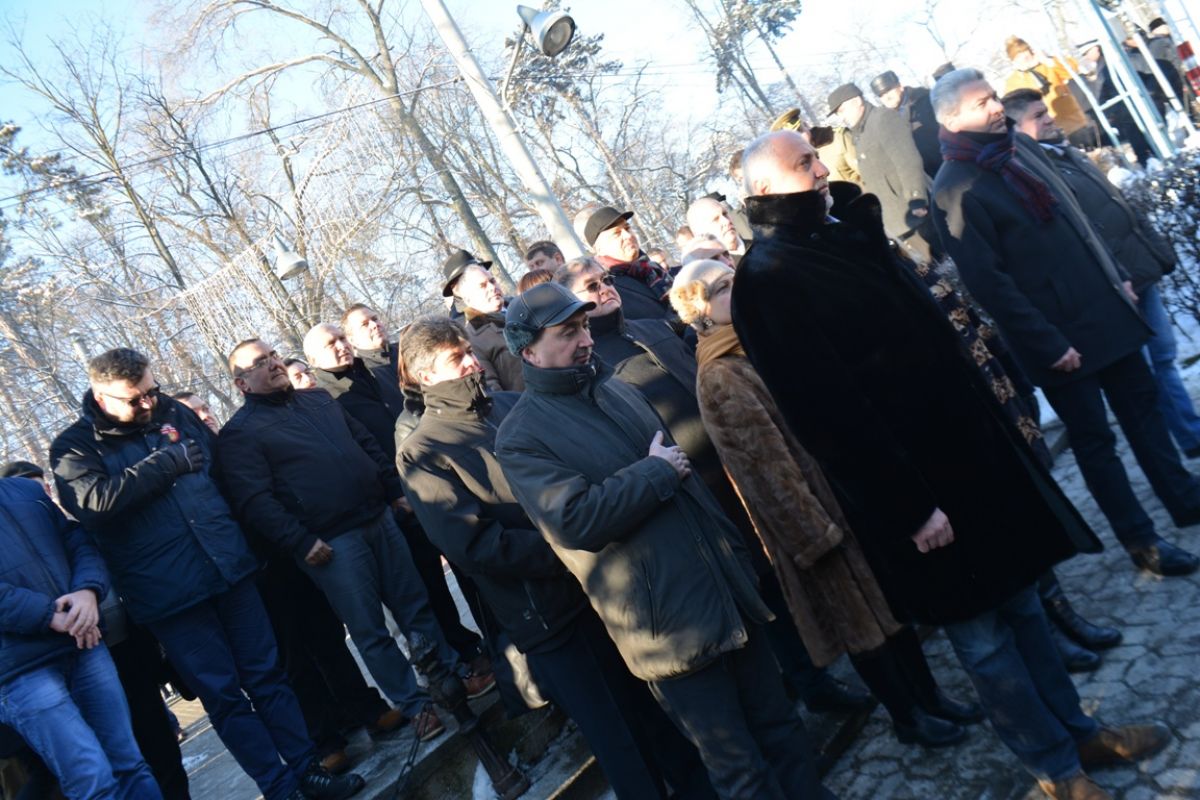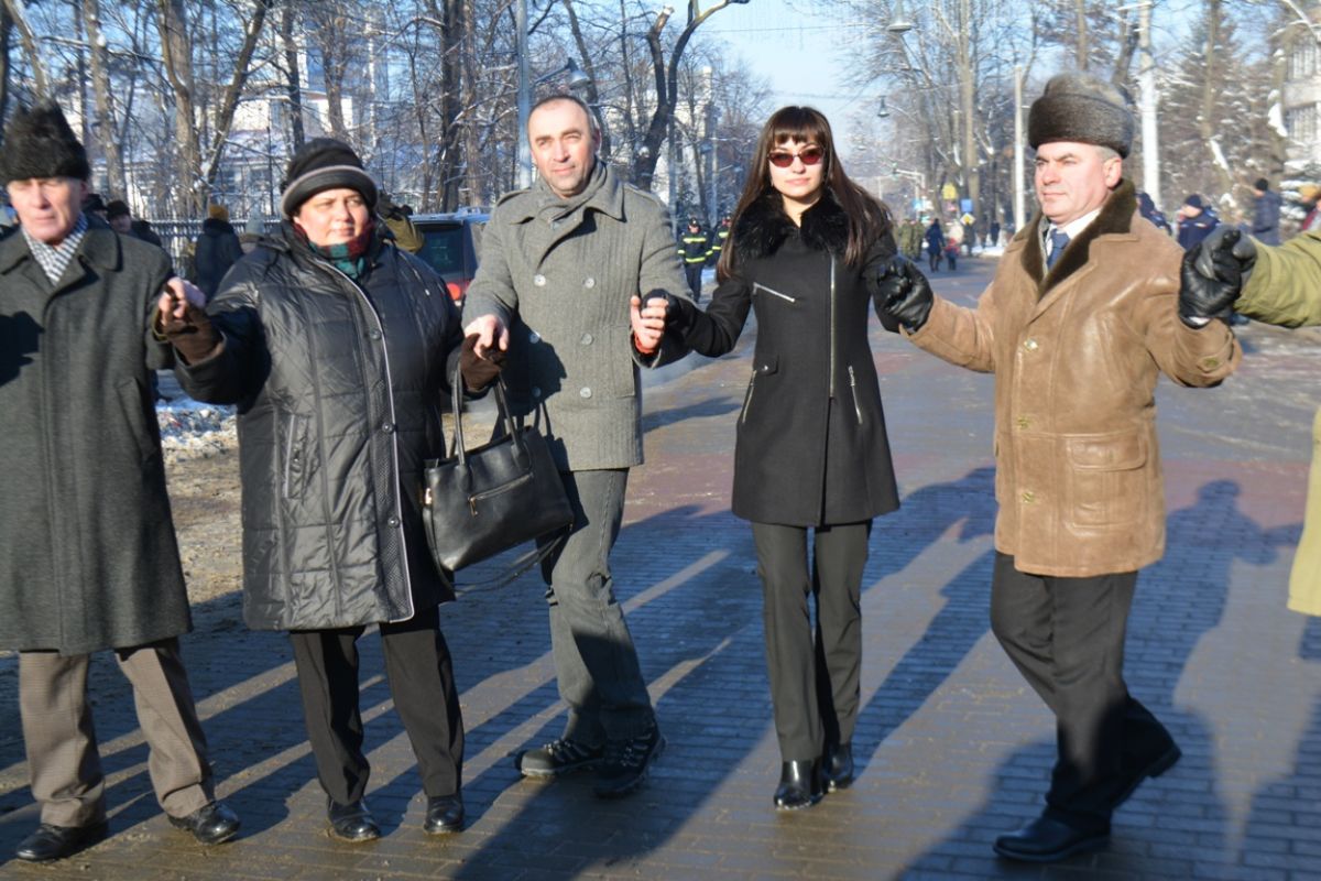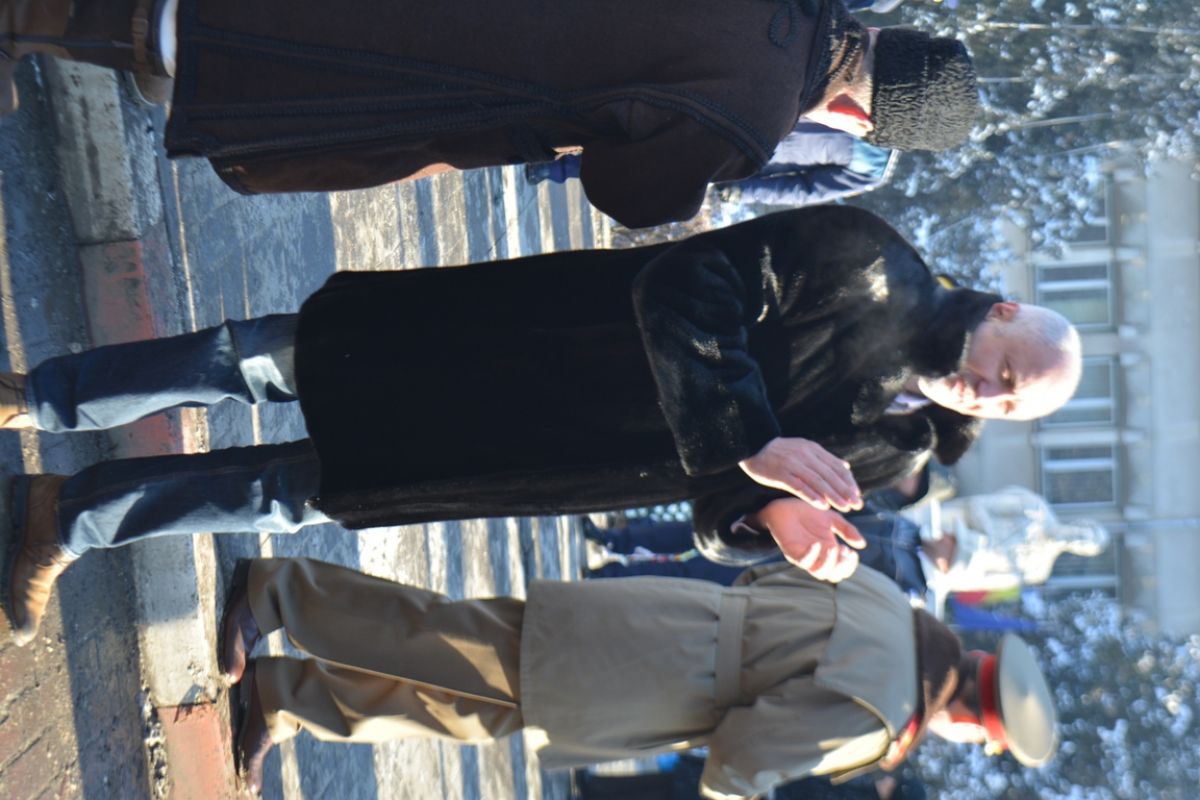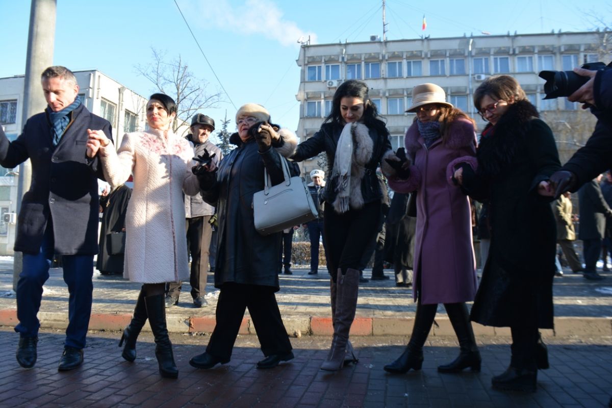 Totul s-a terminat cu Hora Unirii în stradă, în care s-au prins în mare parte tot oficialităţile, oamenii simpli, în jur de o sută de privitori, rămânând tot pe trotuarul dinspre parcul Mihai Eminescu. Unii politicieni au fost aproape de nerecunoscut de sub paltoane sub căciuli. Un copil aproape leşinat a fost preluat de o salvare. De altfel, un echipaj SMURD şi un altul de pompieri au vegheat întreaga desfăşurare a evenimentului. Fundalul muzical, inclusiv „Hora unirii” a fost asigurat printr-o staţie amplasată într-un microbuz de la Şcoala Populară de Arte.