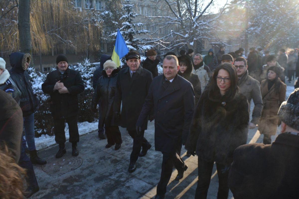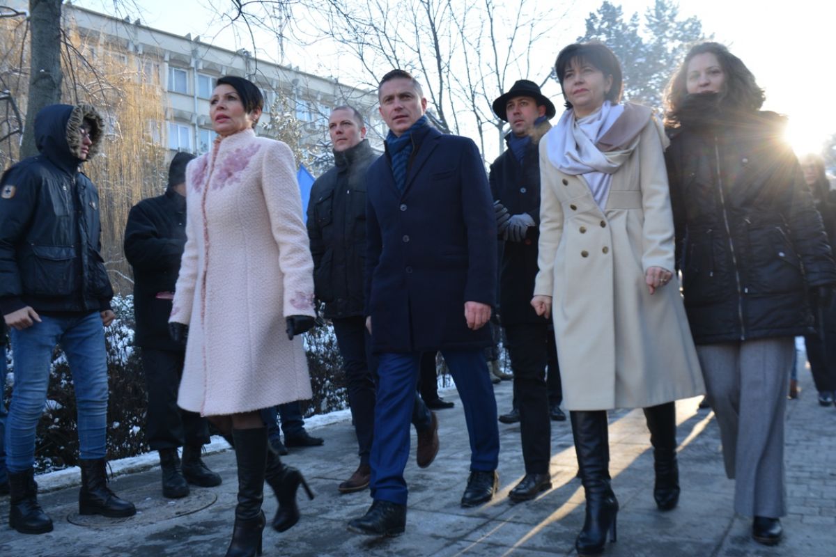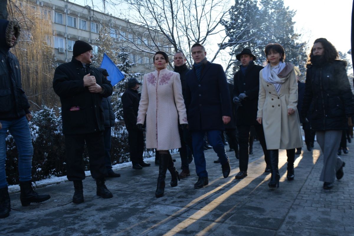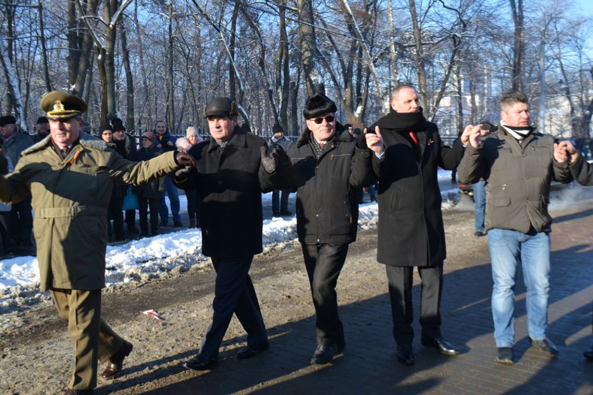 Totul s-a terminat cu Hora Unirii în stradă, în care s-au prins în mare parte tot oficialităţile, oamenii simpli, în jur de o sută de privitori, rămânând tot pe trotuarul dinspre parcul Mihai Eminescu. Unii politicieni au fost aproape de nerecunoscut de sub paltoane sub căciuli. Un copil aproape leşinat a fost preluat de o salvare. De altfel, un echipaj SMURD şi un altul de pompieri au vegheat întreaga desfăşurare a evenimentului. Fundalul muzical, inclusiv „Hora unirii” a fost asigurat printr-o staţie amplasată într-un microbuz de la Şcoala Populară de Arte.