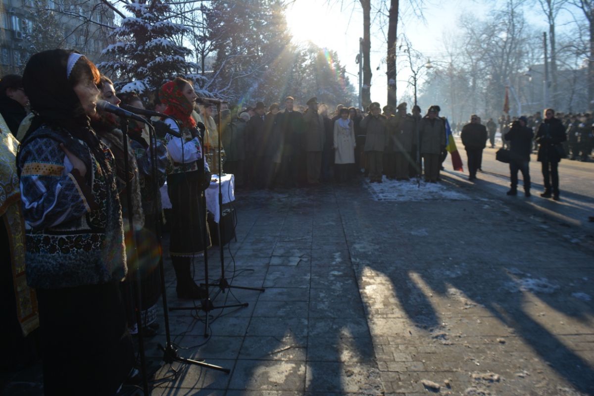Ca şi la Ziua Naţională a României, „Fetele din Botoşani” au cântat „Deşteaptă-te, române”, după care un sobor format din peste zece preoţi şi condus, în lipsa protopopului, de părintele Petru Fercal, a oficiat o scurtă slujbă. Apoi, fără să se ţină vreun discurs, s-a trecut direct la depunerea de coroane. Ca de obicei, Prefectura a deschis acţiunea, urmată de Consiliul Judeţean, Primăria Botoşani, Garnizoana Botoşani şi instituţiile militarizate. Nu au lipsit partidele, în ordinea PSD, ALDE, PNL, PMP şi asociaţiile veteranilor.